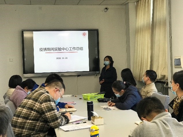 之后,实验教学中心副主任赵浩老师梳理了2020年秋季学期学生返校后,实验中心在常态化疫情防控和教育教学方面做出的努力。中心积极为同学们联系护目镜的最优购买渠道,发放口罩,每周清洗公共实验服,确保同学们安全实验,安心实验;同时各位老师于暑期返校加班,提前做好各项实验室准备工作,为春季实验补课和秋季实验正常开课提供保障。