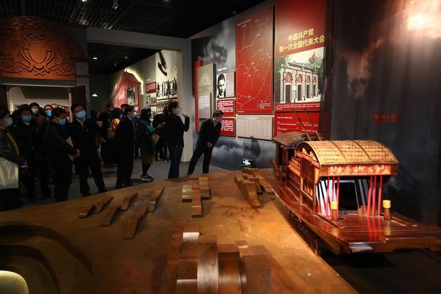 此次展览展出展品共约280组件,以中国共产党的诞生、土地革命、抗日战争、新中国成立四个历史时期为时间线索,空间上从上海到井冈山、到遵义,再到延安、西柏坡、北京,再现了中国共产党不断探索马克思主义中国化的历史进程。现场以史料和文物还原系列重大历史事件,如1872年德文版和1888年英文版的《共产党宣言》《新青年》《少年中国》等新文化运动和五四运动时期的重要刊物,还有开国大典使用过的礼炮等文物藏品,把观众带入了当年让人热血沸腾的场景中。此外,现场还还原了辽沈、淮海、平津三大战役的指挥中心——西柏坡中央军委作战室,身临其境感受历史事件,得到更真实的互动体验。