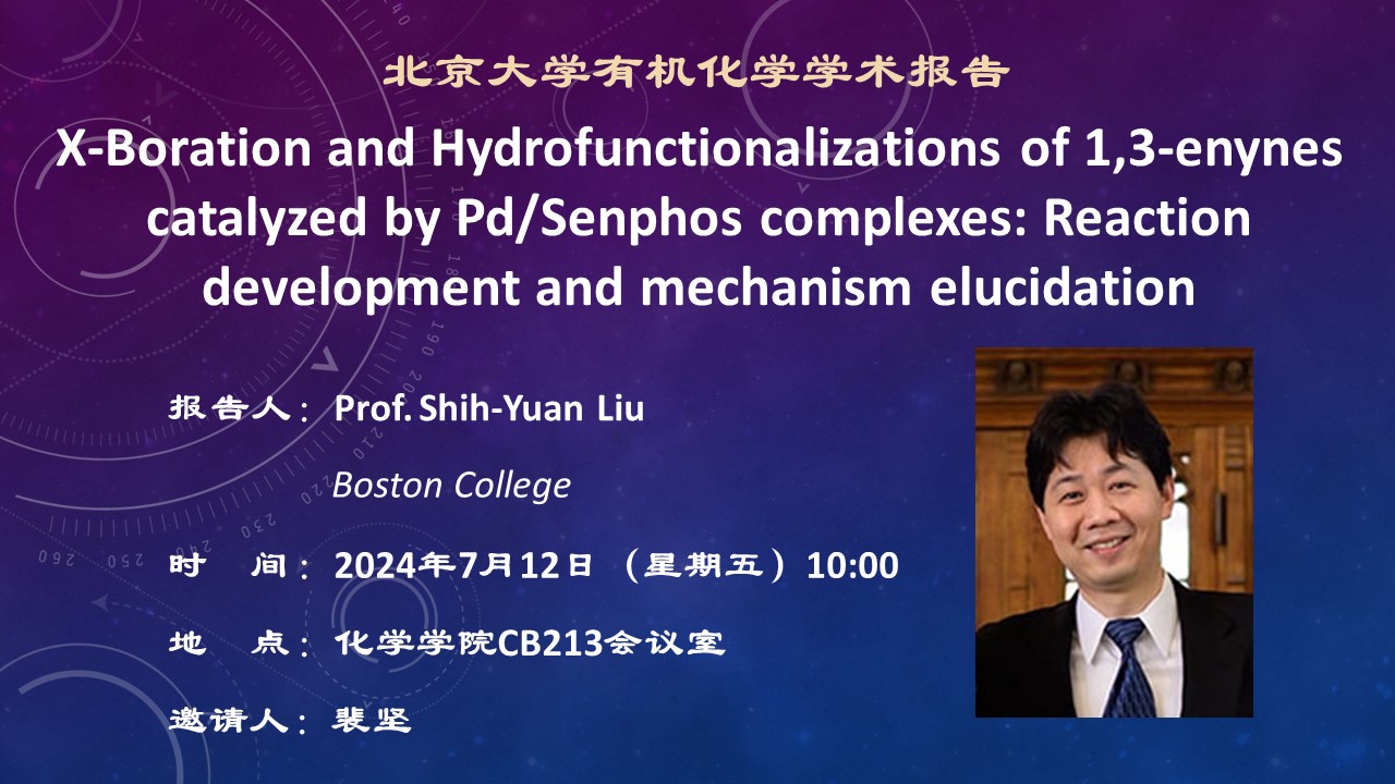 【北京大学有机化学学术报告】X-Boration and Hydrofunctionalizations of 1,3-enynes catalyzed by Pd/Senphos complexes: Reaction development and mechanism elucidation