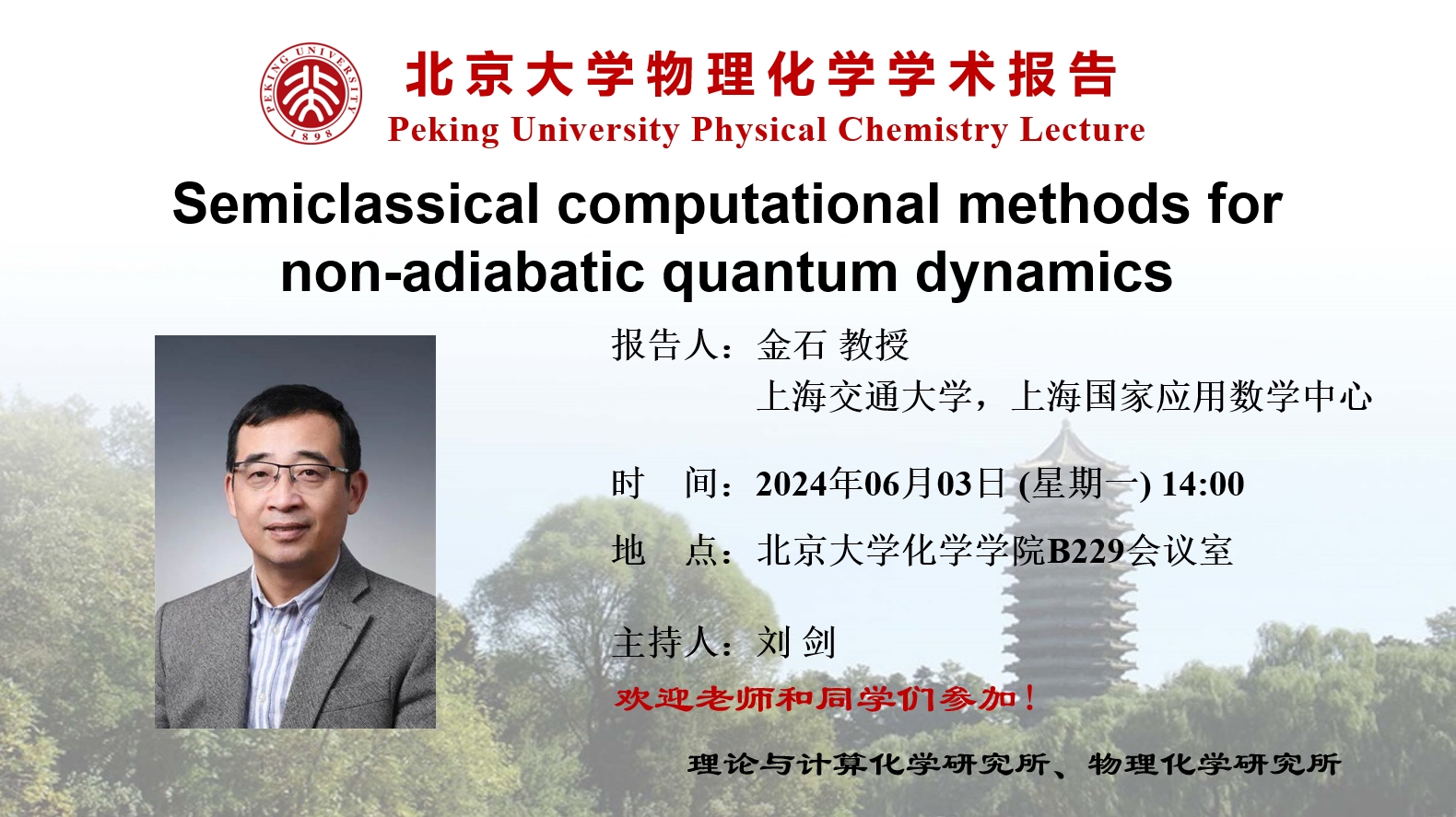 【北京大学物理化学学术报告】Semiclassical computational methods for non-adiabatic quantum dynamics