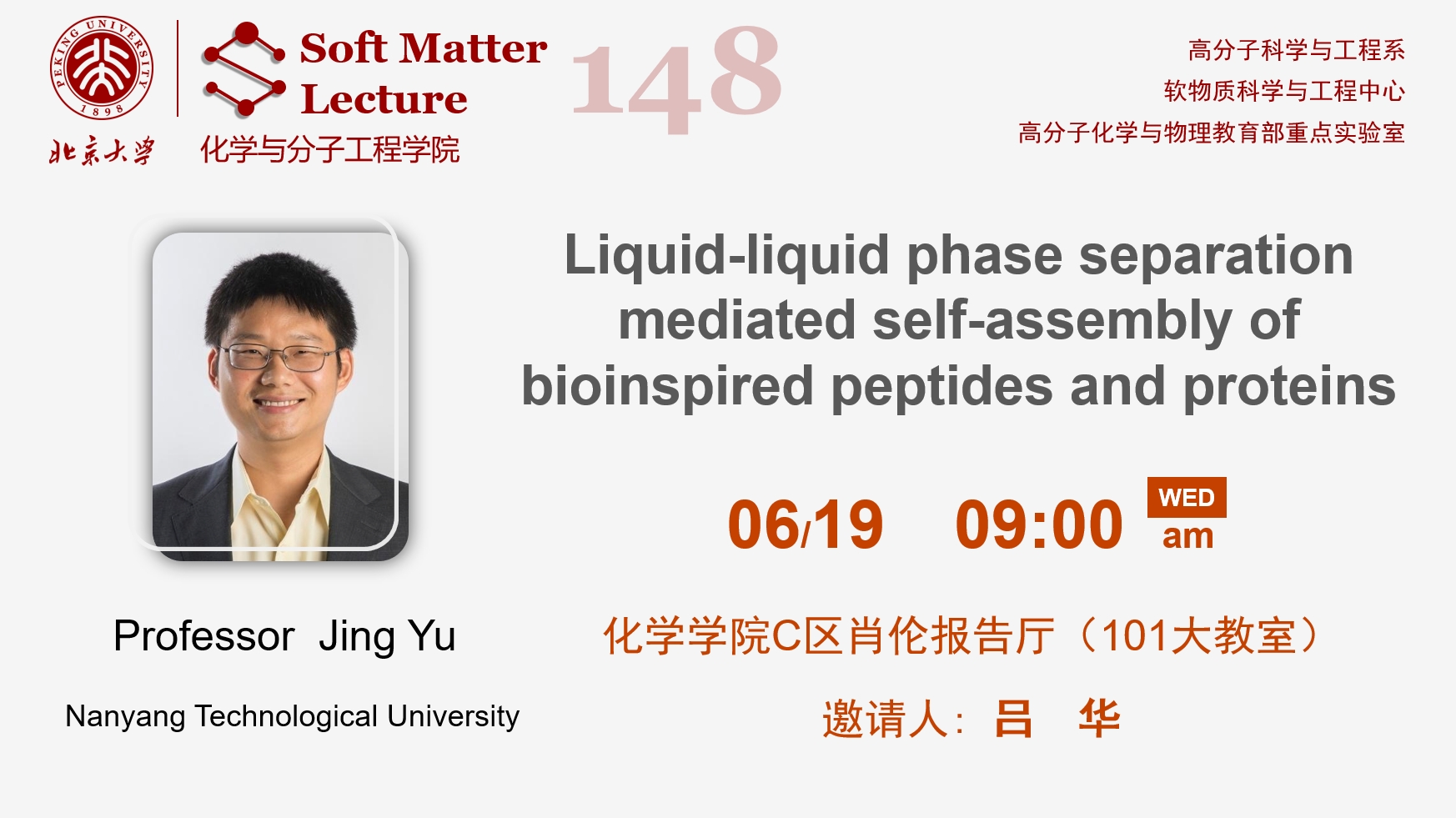 【北京大学物理化学学术报告】Structural Insights from Ultrafast 2D Spectroscopy and Microscopy: Application to Amyloid Proteins and Singlet Fission Materials