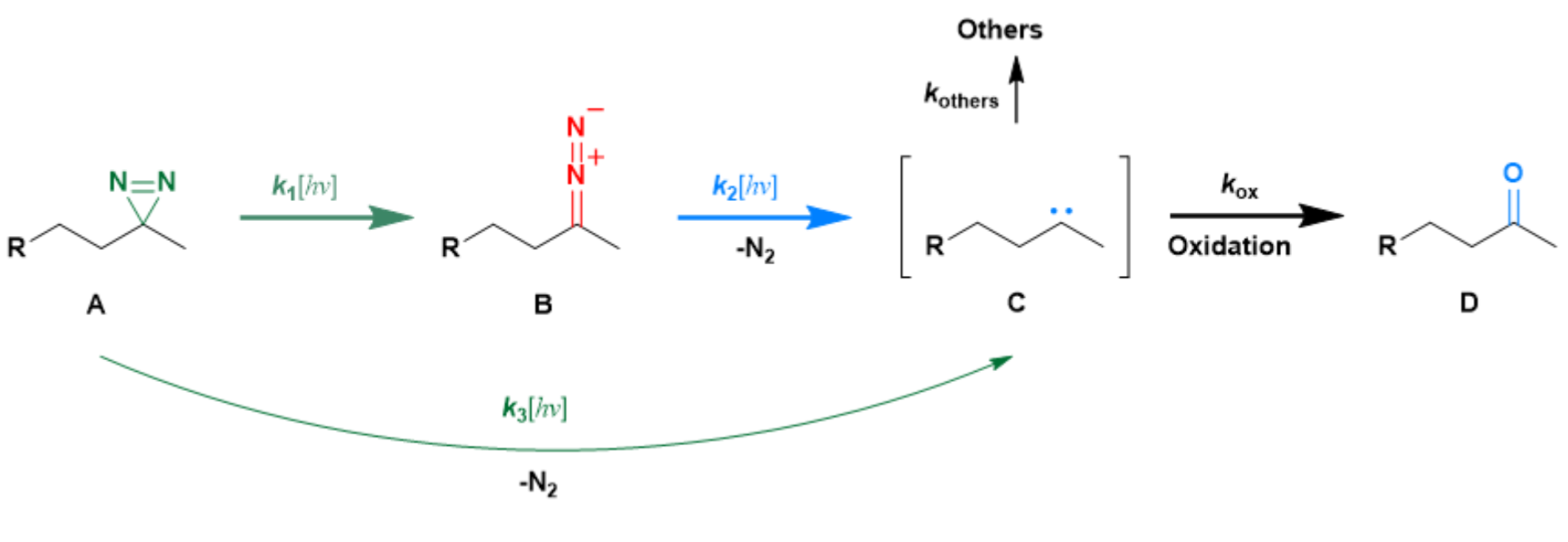 Fig.3 In the photolysis process described by Model II, diazo and carbene intermediates are generated sequentially.