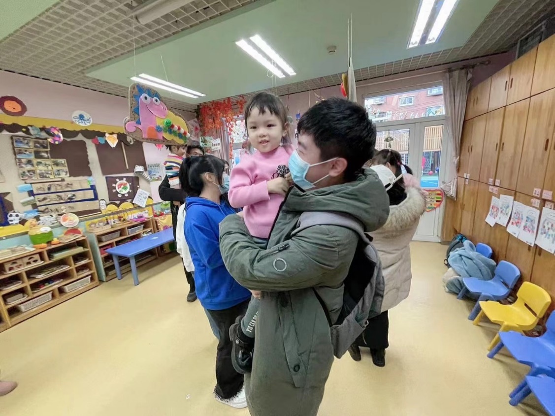 (Caring for children at the kindergarten, we both felt happy and fulfilled.)