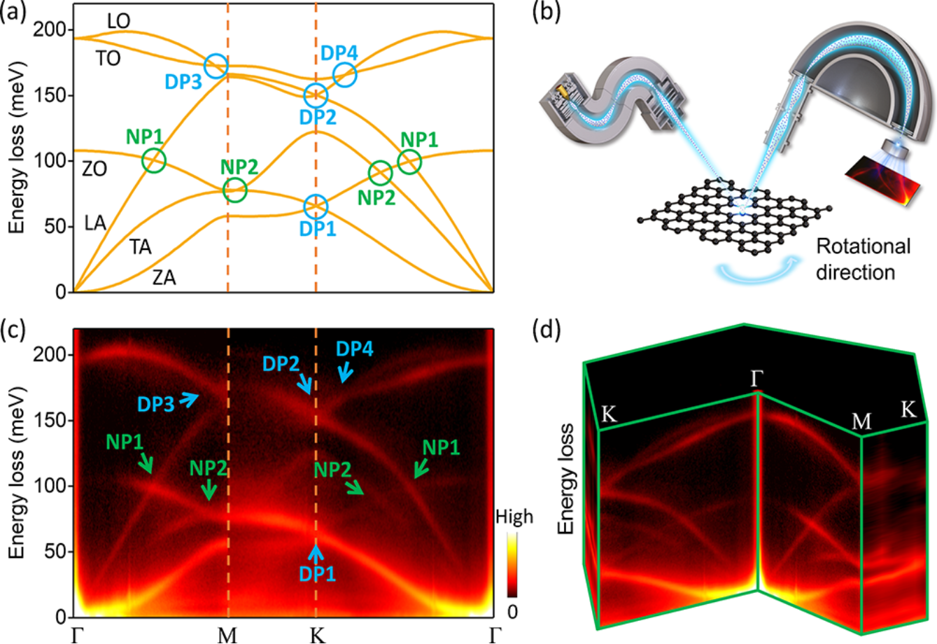 图1. 石墨烯声子谱和实验配置