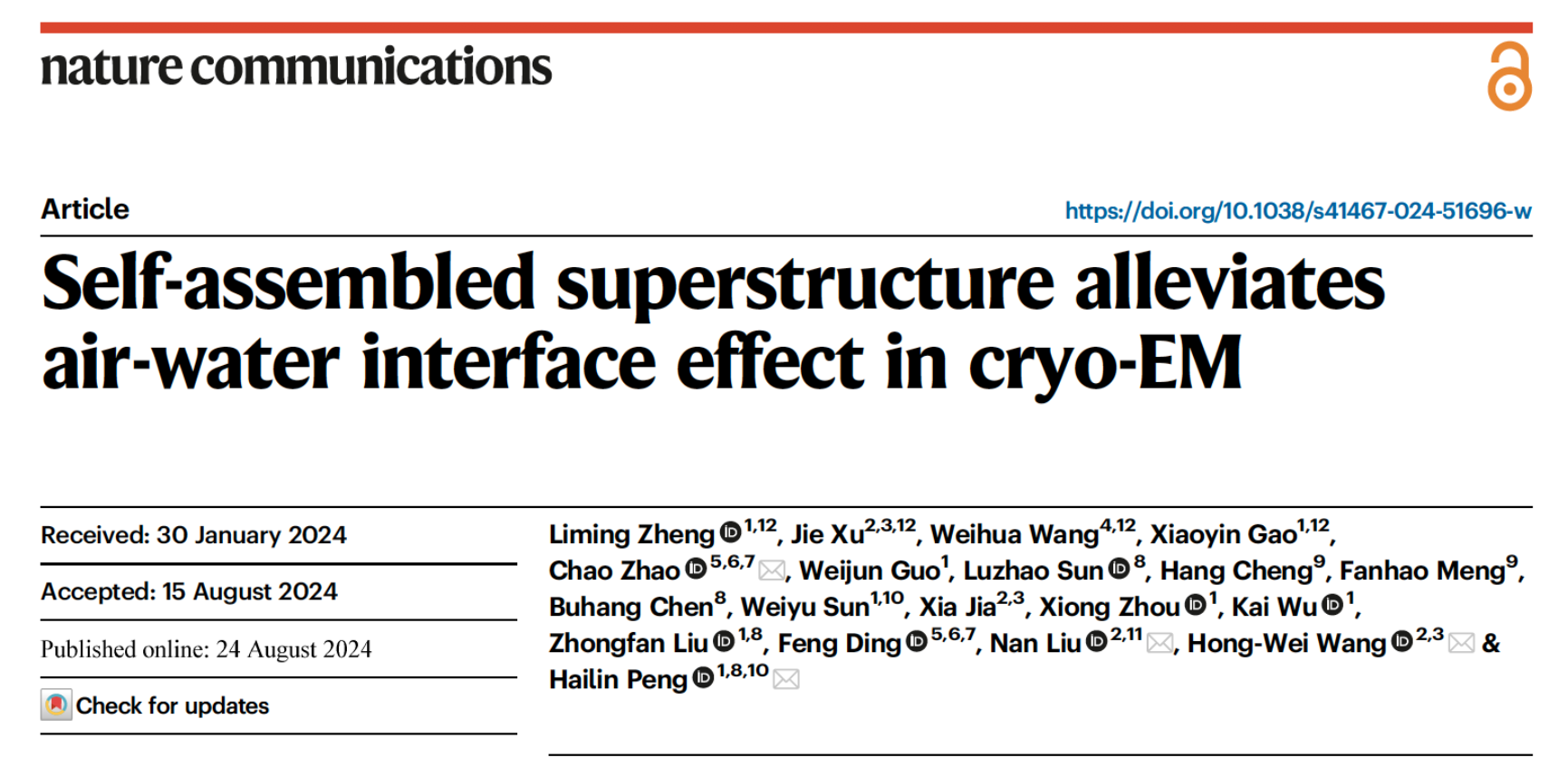 Nature Commun. | 彭海琳课题组与合作者报道自组装超结构电镜载网抑制冷冻制样中的气液界面效应