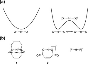 图1. (a)氢键的对称性;(b)对称氢键示例。