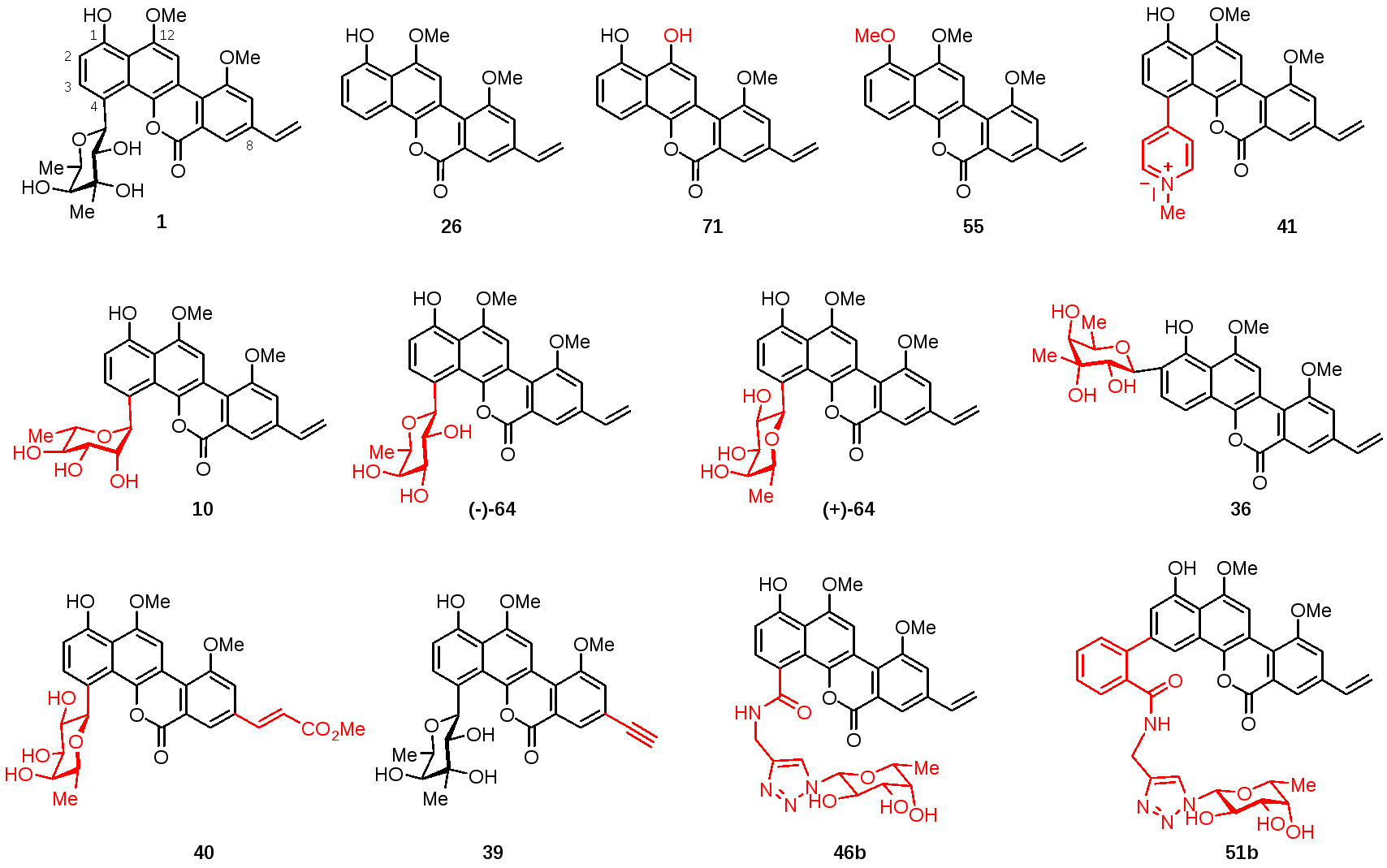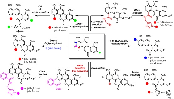 图二:利用天然产物“后期多样化衍生策略”制备多个天然产物衍生物