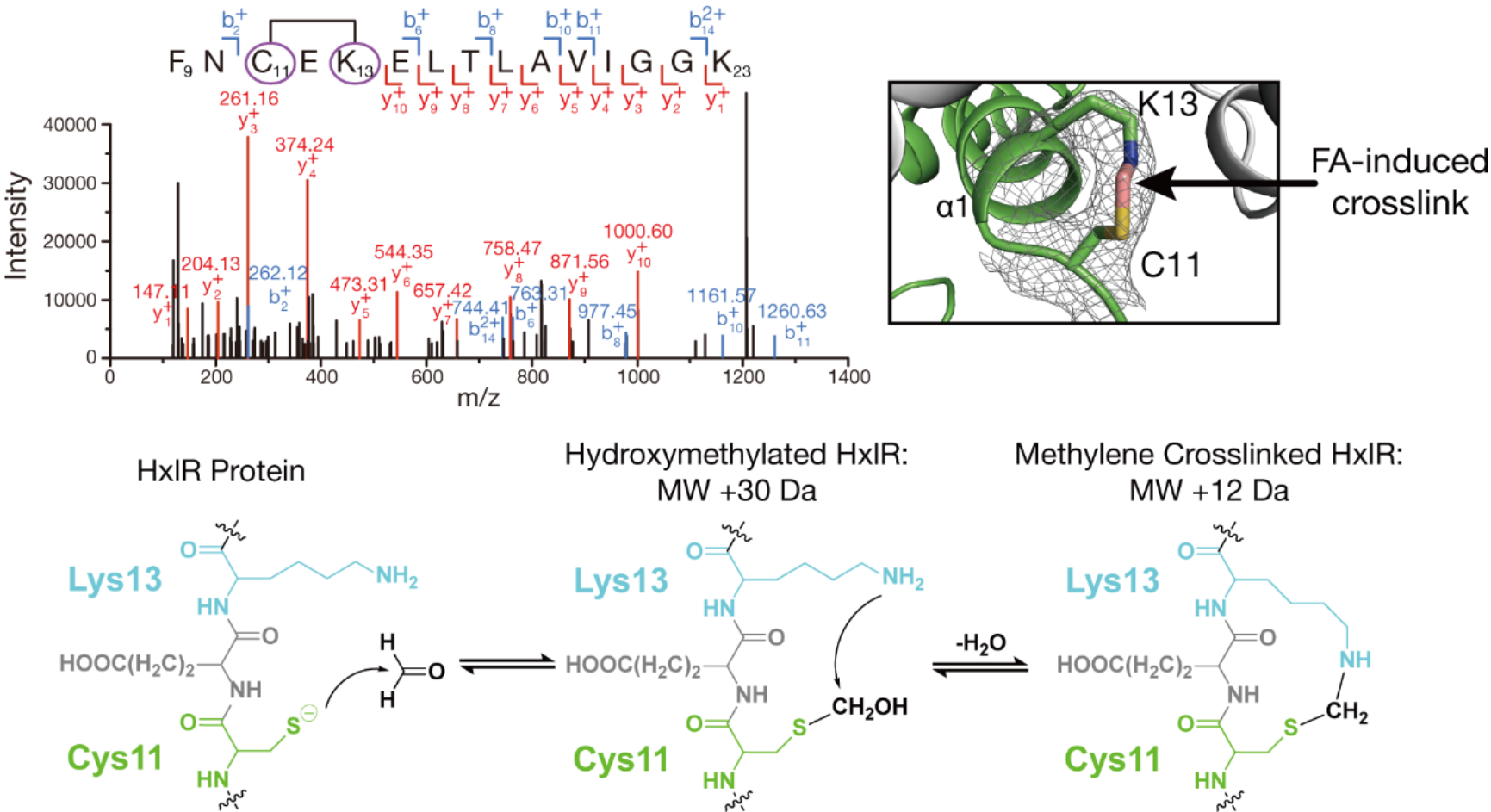 甲醛与HxlR蛋白位点特异性反应形成分子内“亚甲基桥”