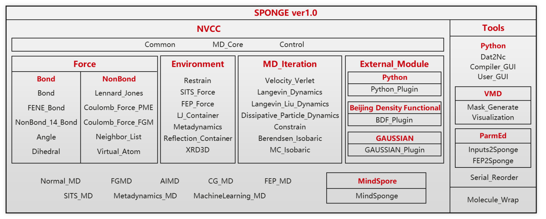 SPONGE分子模拟软件的架构图