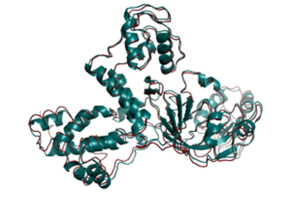 图2 通过昇思MindSpore预测的T1079(绿色代表实验结构,红色代表预测结构)