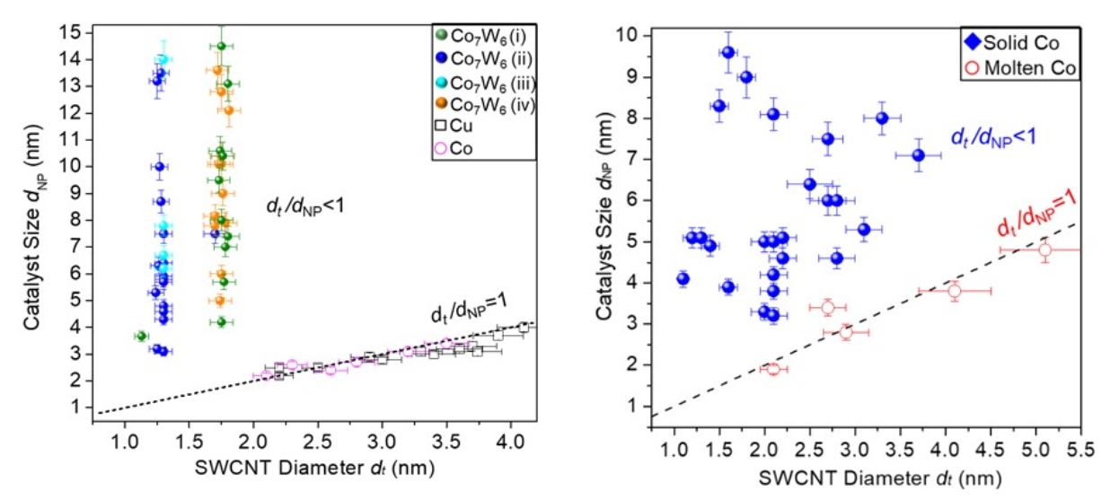 图4 单壁碳纳米管直径与催化剂尺寸的关系