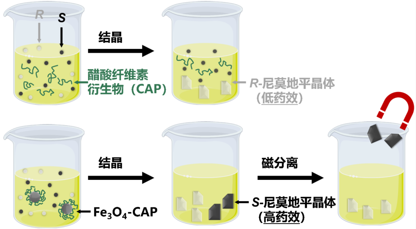 图 1 对外消旋尼莫地平的结晶拆分与磁分离。