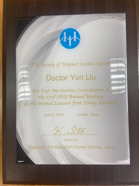 Yun was invited as one of the six oversea young scientists to give a talk at the 73rd annual meeting of Society Polymer Science, Japan (SJSP) at the Sendai International Center.