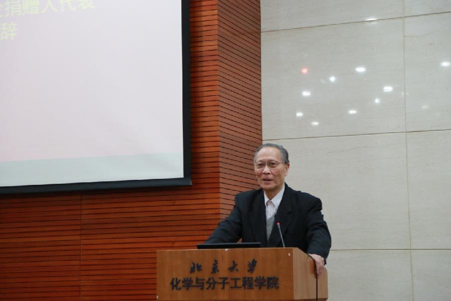 谢有畅教授作为奖学金捐赠方代表致辞,他向各位同学介绍了先锋公司近期在科研和生产领域中的创新和进展,而这些都与化学学院广大师生的科研工作密不可分。谢老师还介绍了先锋公司大力资助化学学院师生的情况,并向所有获奖同学表示祝贺,希望他们能够继续在学习和科研道路上取得进步,并在未来反哺学校和社会。