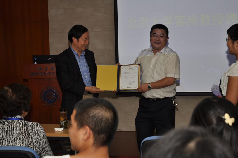 2011年8月24日下午,北京大学授予陆艺博士客座教授仪式暨学术报告会在化学与分子工程学院举行,化学学院院长吴凯教授、副院长来鲁华教授、黄春辉院士、赵新生教授等化学学院师生出席了聘任仪式和报告会。吴凯教授致辞,并向陆艺博士颁发了北京大学客座教授证书。