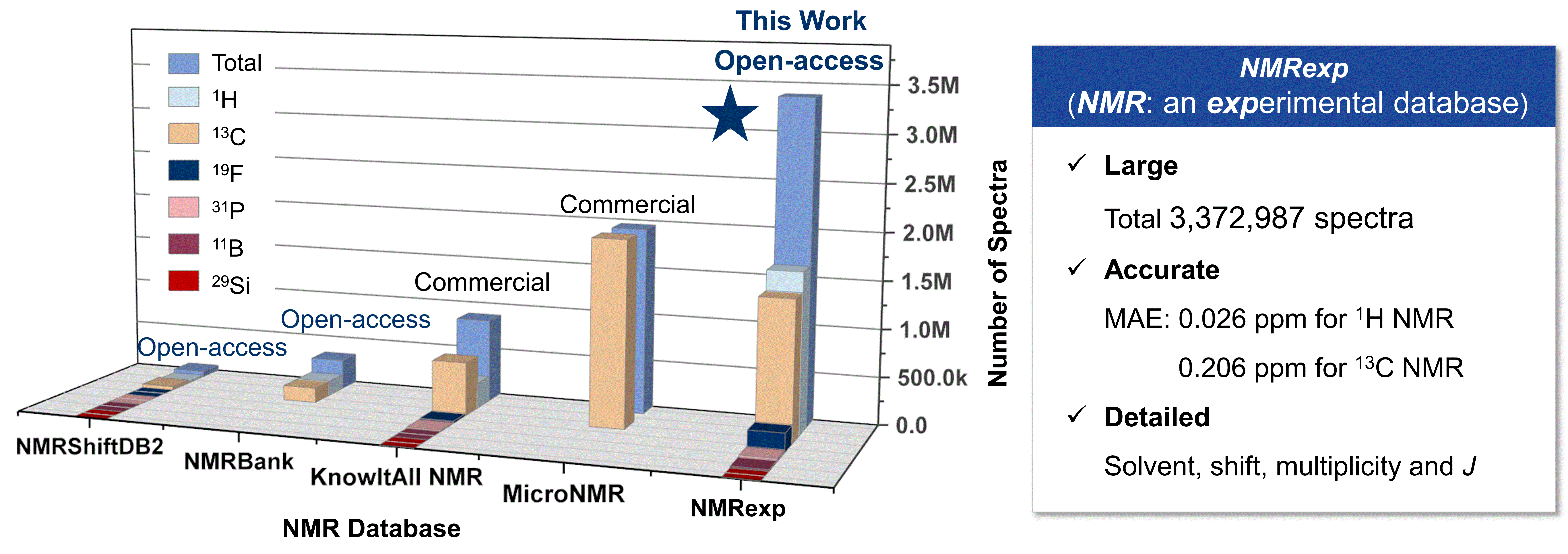 In this work, we introduce NMRexp, an open and curated database comprising 3.3 million experimental NMR spectra across six nuclei (1H, 13C, 19F, 31P, 29Si, and 11B), extracted from nearly 200,000 Supporting Information documents published between 2010 and 2024. By combining large-scale automated extraction with strict rule-based parsing and chemical-consistency validation, NMRexp achieves > 99% accuracy in metadata extraction (chemical shifts, multiplicities, J-couplings, solvents) and 98% correctness in molecular-skeleton assignment; internal consistency tests yielded mean absolute errors of 0.026 ppm for 1H and 0.206 ppm for 13C chemical shifts.