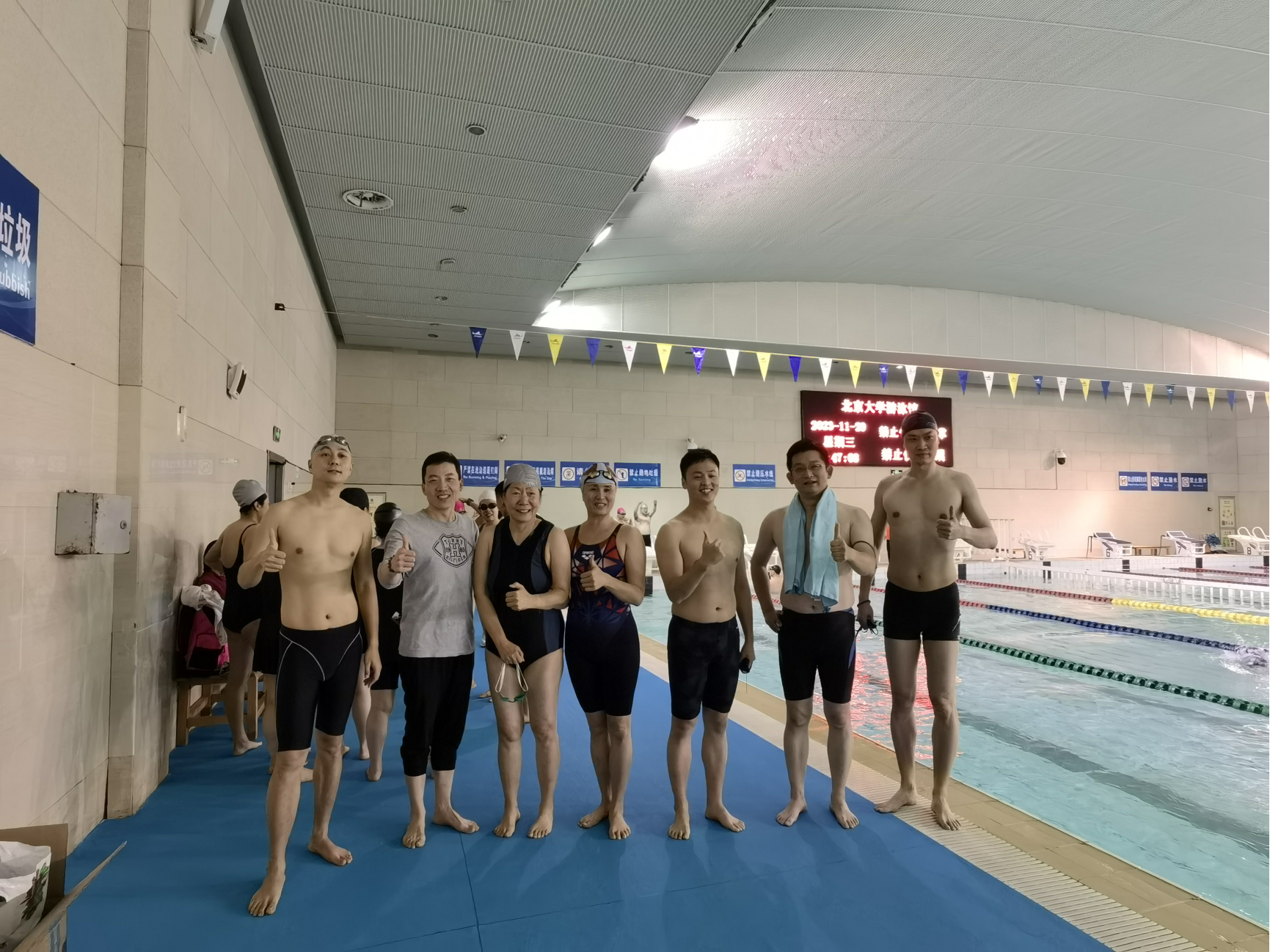 隆冬时节,寒气逼人,但邱德拔体育馆的游泳馆内却气氛热烈,盛况空前。11月29日晚,2023年北京大学教职工游泳比赛在北京大学邱德拔游泳馆内隆重举行。化学学院教工代表队阵容强大,共有25名参赛队员齐聚一堂。经过3个多小时激烈的角逐,化学学院代表队以总分188分的卓越成绩在24支各院系队伍中脱颖而出,荣获第一名。这场比赛不仅为老师们提供了展示泳技的平台,同时也燃起了大家对游泳运动的喜爱与热情。