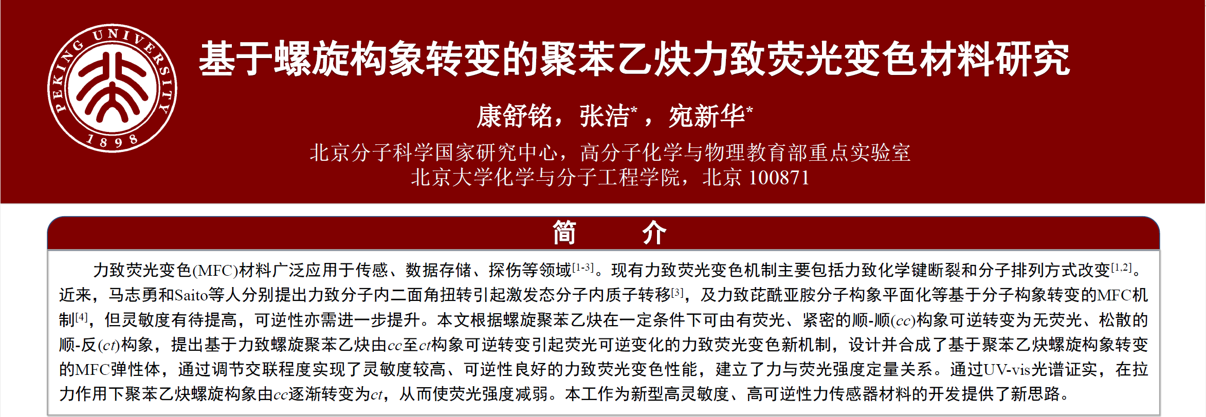 这其中康舒铭博士展出了自己关于“基于螺旋构象转变的聚苯乙炔力致荧光变色材料研究”的工作。