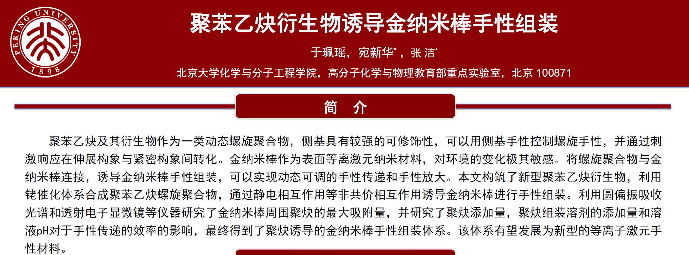 于珮瑶同学展出了自己关于“聚苯乙炔衍生物诱导金纳米棒手性组装”的工作,探索了聚合物手性向无机纳米粒子手性传递的过程,获得了“优秀墙报奖”的荣誉。
