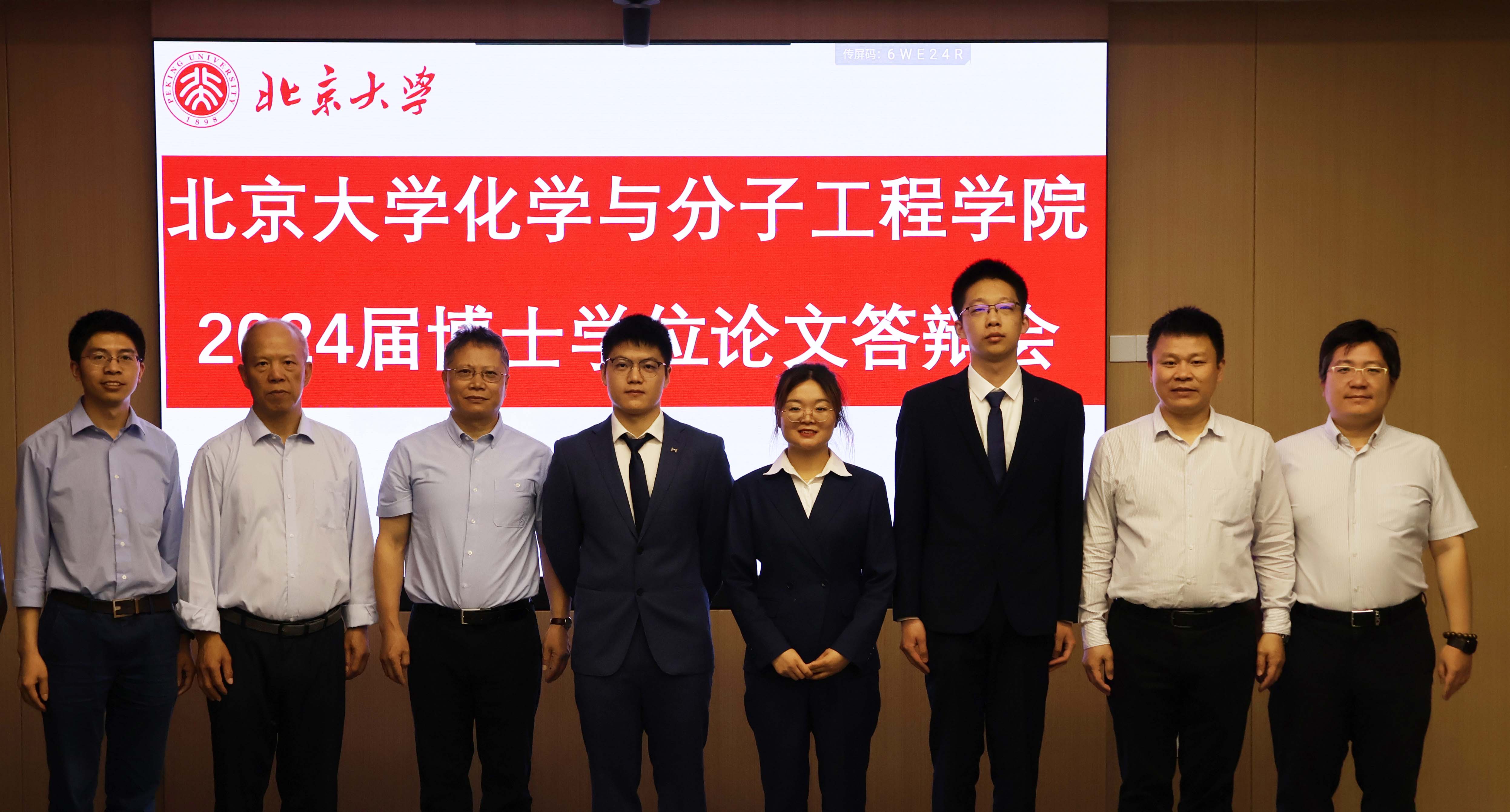 On June 1, 2024, Chai Zhengqi from our group successfully defended his doctoral thesis. Chai, a PhD candidate from the Class of 2019 under the guidance of Prof. Zhang, focused his research on the synthesis, structure, and reactivity of rare-earth heterocycles. During his defense, he presented his research achievements and future prospects to the judges, engaging in a comprehensive discussion with them. The judges highly praised Chai's work and provided numerous suggestions for further research. Additionally, Prof. Xi's students Xu Hanhua and Wang Xueli also participated in the defense. The defense committee unanimously passed the doctoral defenses of all three students, recommending that they be awarded the Doctor of Science degree. Warm congratulations to Chai Zhengqi, Xu Hanhua, and Wang Xueli. We wish them a bright future and smooth sailing ahead!