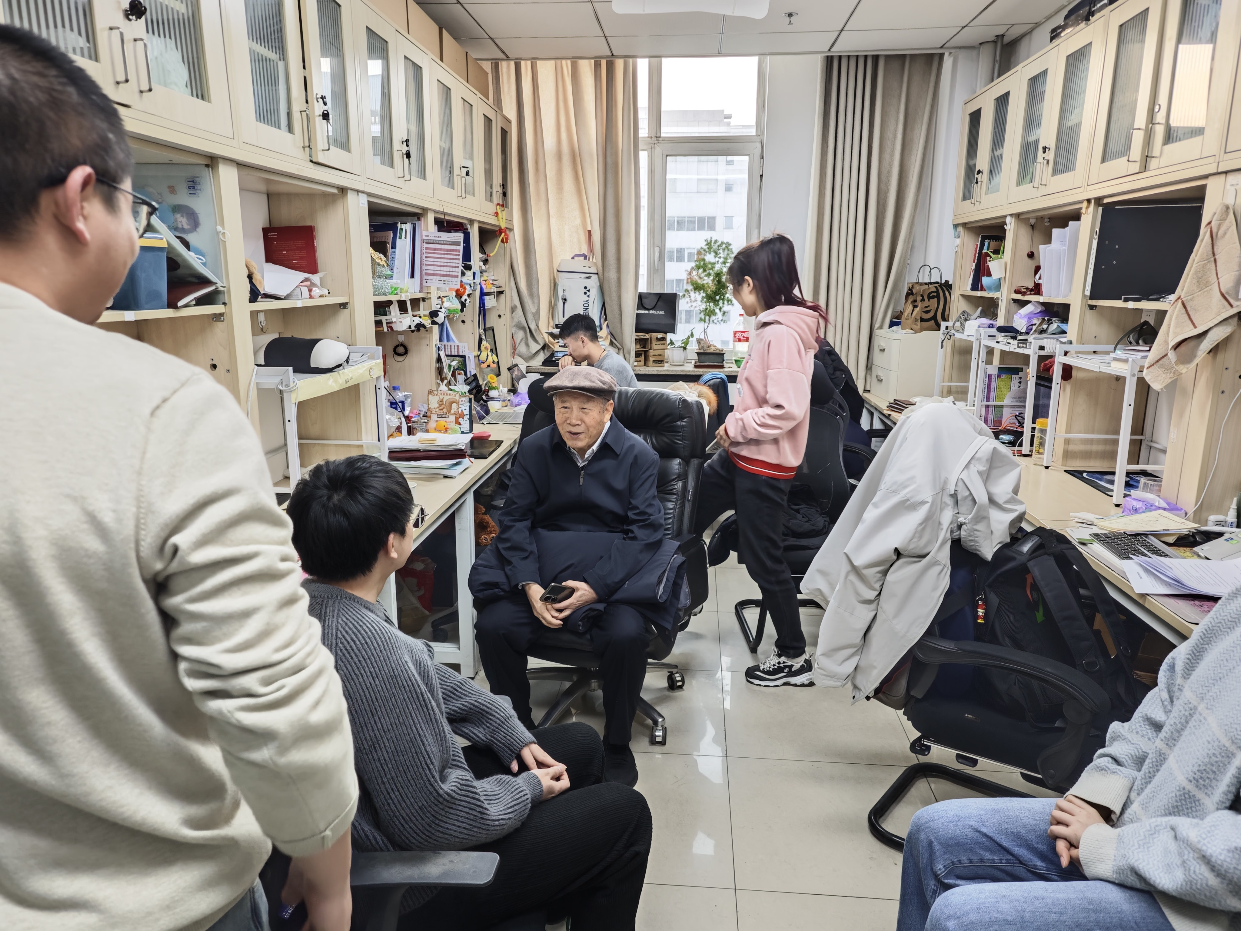 On Dec. 11th, on the occasion of the 30th anniversary of the founding of CCME at PKU, Prof. Song Licheng from Nankai University was invited to attend the celebration. During his visit, he toured our lab and display boards under the guidance of Dr. Wei and engaged in warm exchanges with us. We enthusiastically introduced our work to Prof. Song and took his insightful advice to heart.