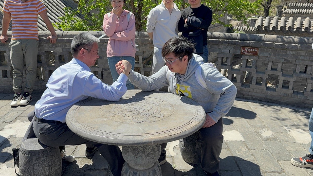 On the morning of April 26, members of both groups departed from the Department of Chemistry and arrived at Gubei Water Town. In the warmth of spring, the group undertook a collective hike to Simatai Great Wall. As one of the best-preserved sections of the Ming Dynasty Great Wall, Simatai is renowned for its steep and rugged terrain. Throughout the climb, participants supported one another and ultimately reached the summit, where they were rewarded with a panoramic view of the picturesque town nestled among mountains. The following morning, the group explored Gubei Water Town’s cultural experience programs, visiting traditional sites such as a dyeing workshop, a historical security agency (biaoju), and an old-style academy. These stops offered insight into traditional handicrafts and folk customs. The town’s Jiangnan-style charm was especially captivating under the spring sunshine. As they strolled through the alleys framed by grey brick walls and black-tiled roofs, students and faculty alike paused to admire the harmony between architecture and nature, taking photos to preserve the memories.