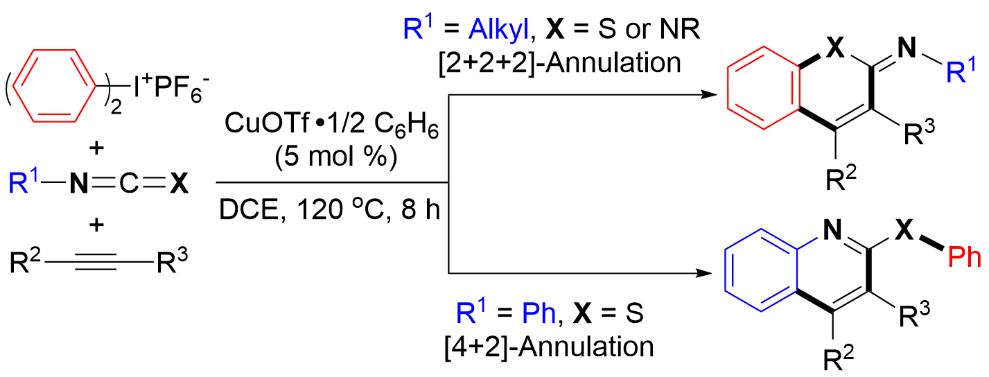 132. Yue Chi#, Haihan Yan#, Wen-Xiong Zhang*, and Zhenfeng Xi, Synthesis of Quinoline Derivatives via Cu-catalyzed Cascade Annulation of Heterocumulenes, Alkynes and Diaryliodonium Salts,