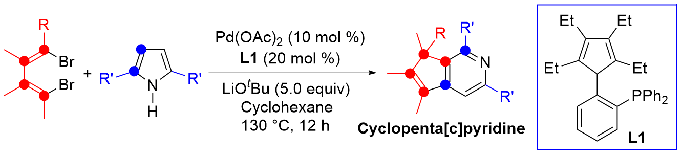130. Jianhao Yin, Qingyu Ye, Wei Hao, Shuaijing Du, Yucheng Gu, Wen-Xiong Zhang*, and Zhenfeng Xi*, Formation of Cyclopenta[c]pyridine Derivatives from 2,5-Disubstituted Pyrroles and 1,4-Dibromo-1,3-butadienes via Pyrrole-Ring One-Carbon Expansion,
