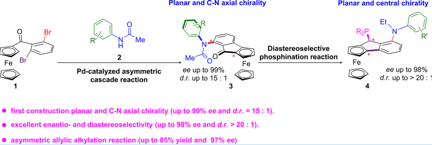 219. Congyu Gao, Yuanyuan Liu, Junpeng Liu, Jianfeng Hu, Wen-Xiong Zhang*, Yong Yang*, and Hao Zhang*, Simultaneous Construction of Planar and C−N Axial Chirality Ferrocenes by Pd-Catalyzed Cascade Reaction: Reciprocal Carbonyl-Carbonyl Interaction,