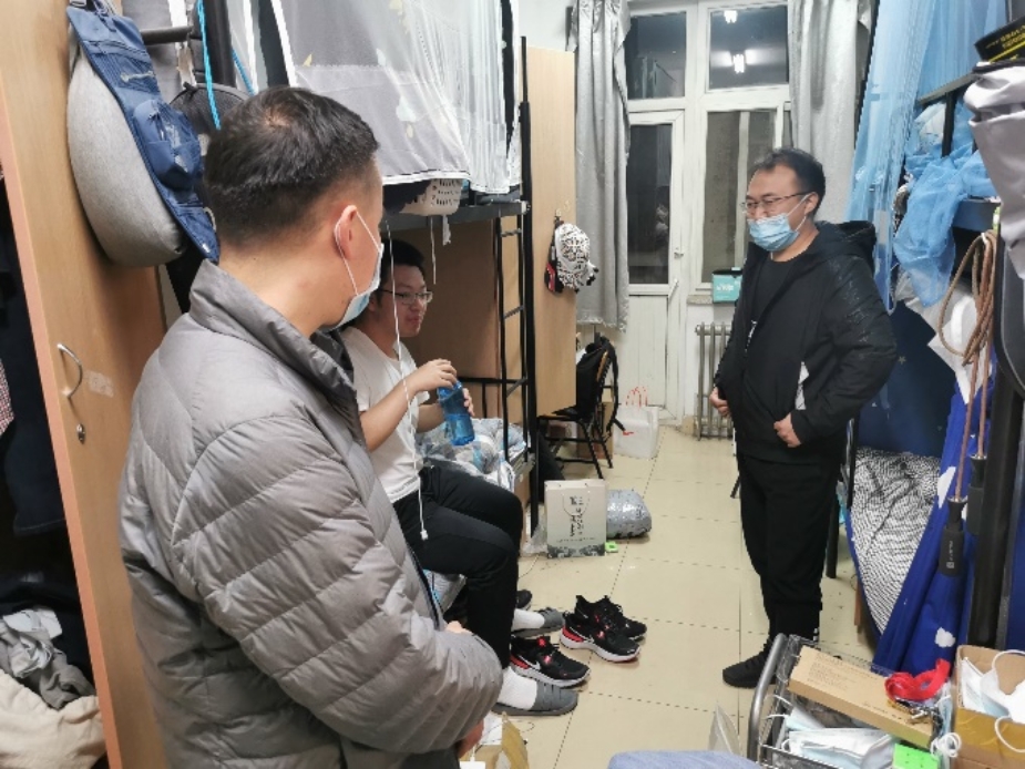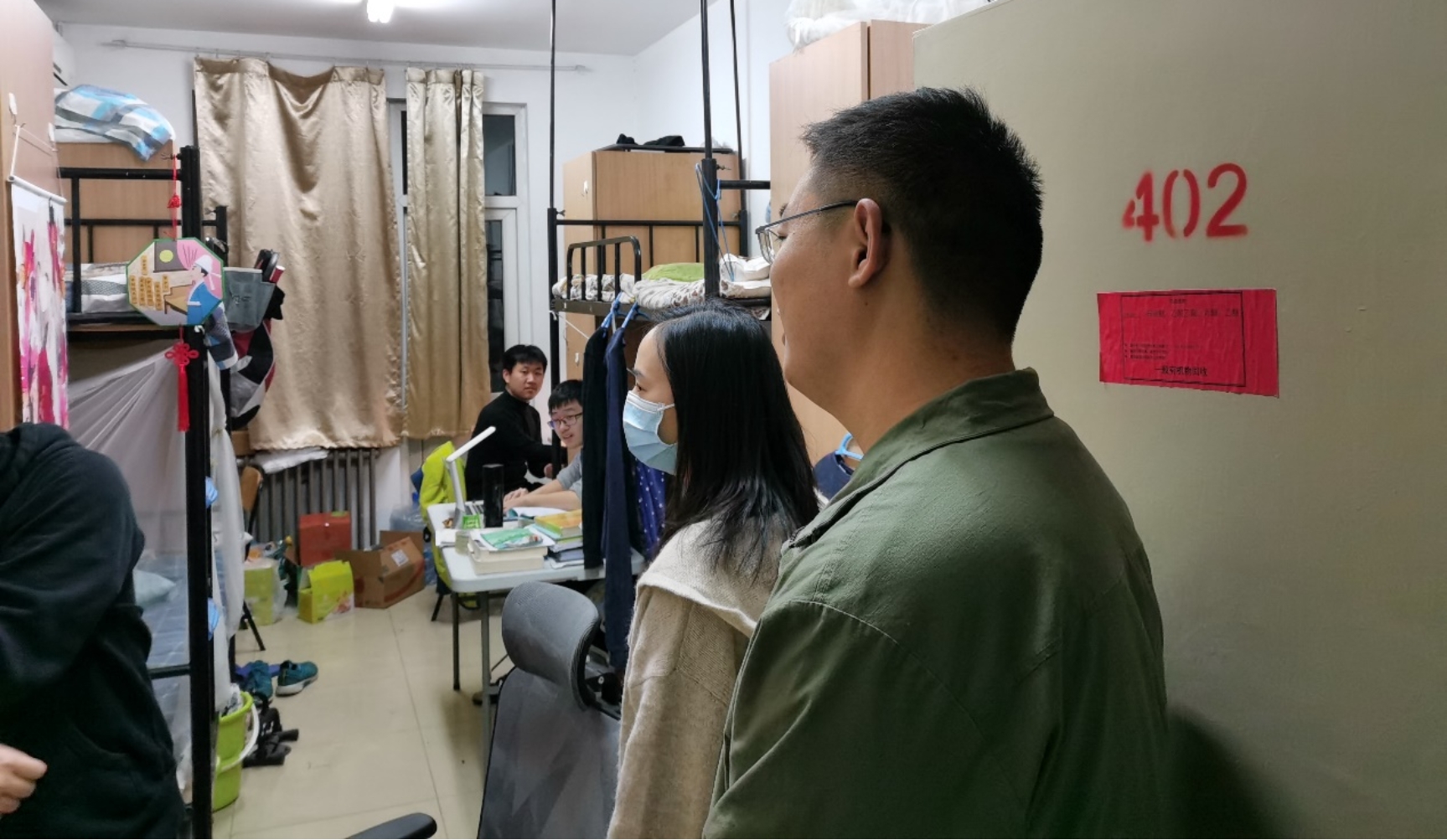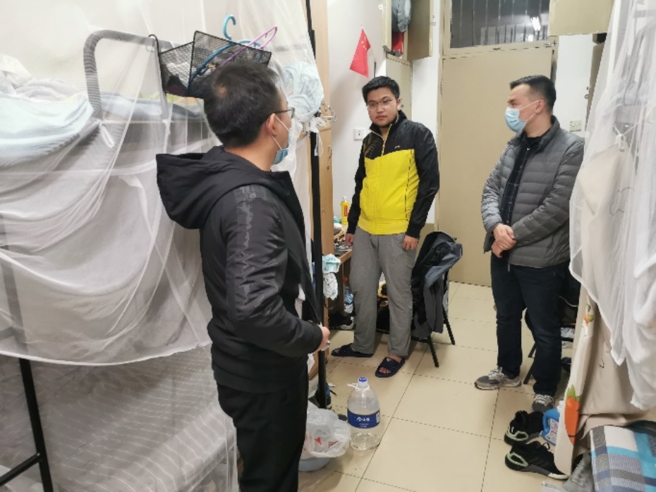 在2020级学生宿舍,年级主任王初与同学深入交流,嘱咐同学们保持宿舍整洁通风,做好个人卫生。了解同学们入学以来学生生活适应情况提醒同学遇到任何困难要及时与班主任、辅导员联系,学院将为每位同学的健康成长做好支持保障。