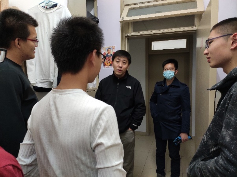 在疫情常态化的大背景下,为推动“弘扬伟大抗疫精神,践行爱国卫生运动”主题教育的开展,加强对化学学院学生学习生活的关心指导,2020年10月27日夜,学院学工办主任、团委书记张舒,辅导员李珣、侯梦旭、高琰、马晶晶,年级主任李琦、王初,与37楼、45楼驻楼辅导员、学生班主任们一起分别走访本科各个年级学生宿舍,带去心的询问、细致的关怀和深情的嘱托。