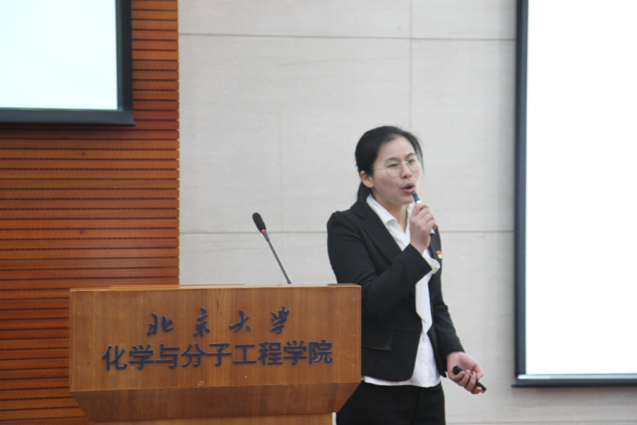2014级研究生顾春晖同学作为学术科研代表,在博士期间发表高水平SCI论文12篇,其中第一作者7篇,获得了研究生国家奖学金、化学之星、北京大学三好学生等多项奖励。他向同学们介绍了“要”成果、“拼”成果和“熬”成果的艰辛却丰富的科研经历,也展现了自己在音乐、绘画、摄影等方面的闲情逸致。顾春晖同学告诉大家,作为化学学院几百名普通人之一,坚守自己的本职工作、坚守科研的信念、坚守一名普通人的幸福,即使未曾有过大放异彩的青春,还是能收获精彩且有意义的人生。他向大家展现了一个严谨求实、爱好广泛的学术科研代表的风采。化学学院党委副书记赵美萍为顾春晖同学颁发了学术科研榜样的奖状和奖杯。