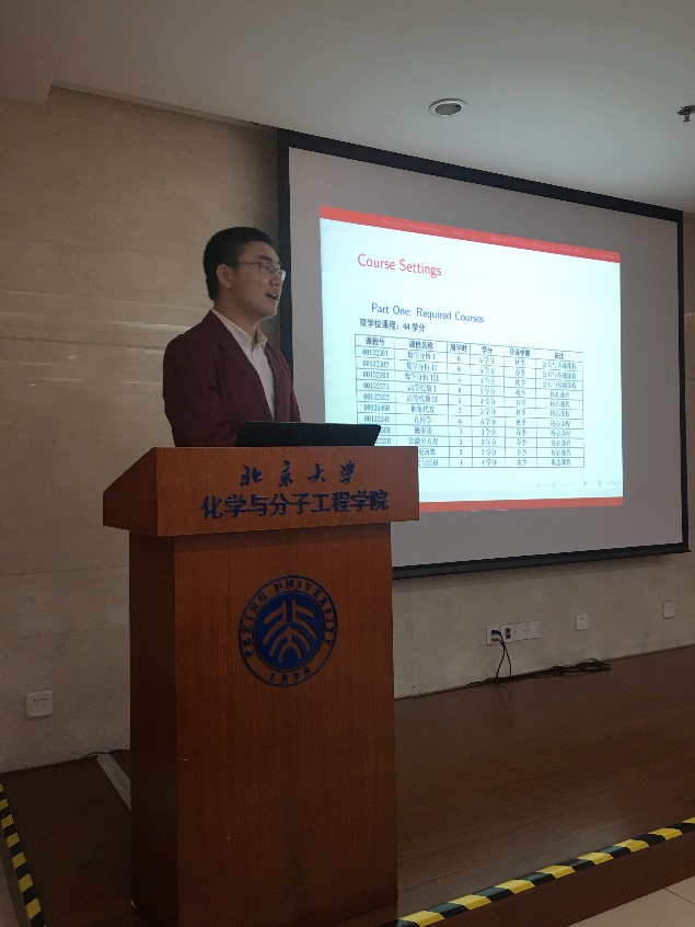 近期,教务部发布了《北京大学2018年本科双学位招生通知》,鼓励有意修读辅修专业和双学位的同学根据实际情况谨慎选择、报名。为帮助化学学院2017级本科生了解修读双学位的相关事宜,4月15日下午13:00-15:00,双学位经验交流会在学院A717会议室举行。五位2016级本科生担任嘉宾,介绍了各自所修双学位的申请流程、课程设置、感想感受等。30余位2017级本科生参会,交流会由学工办专职辅导员邓安琪主持。