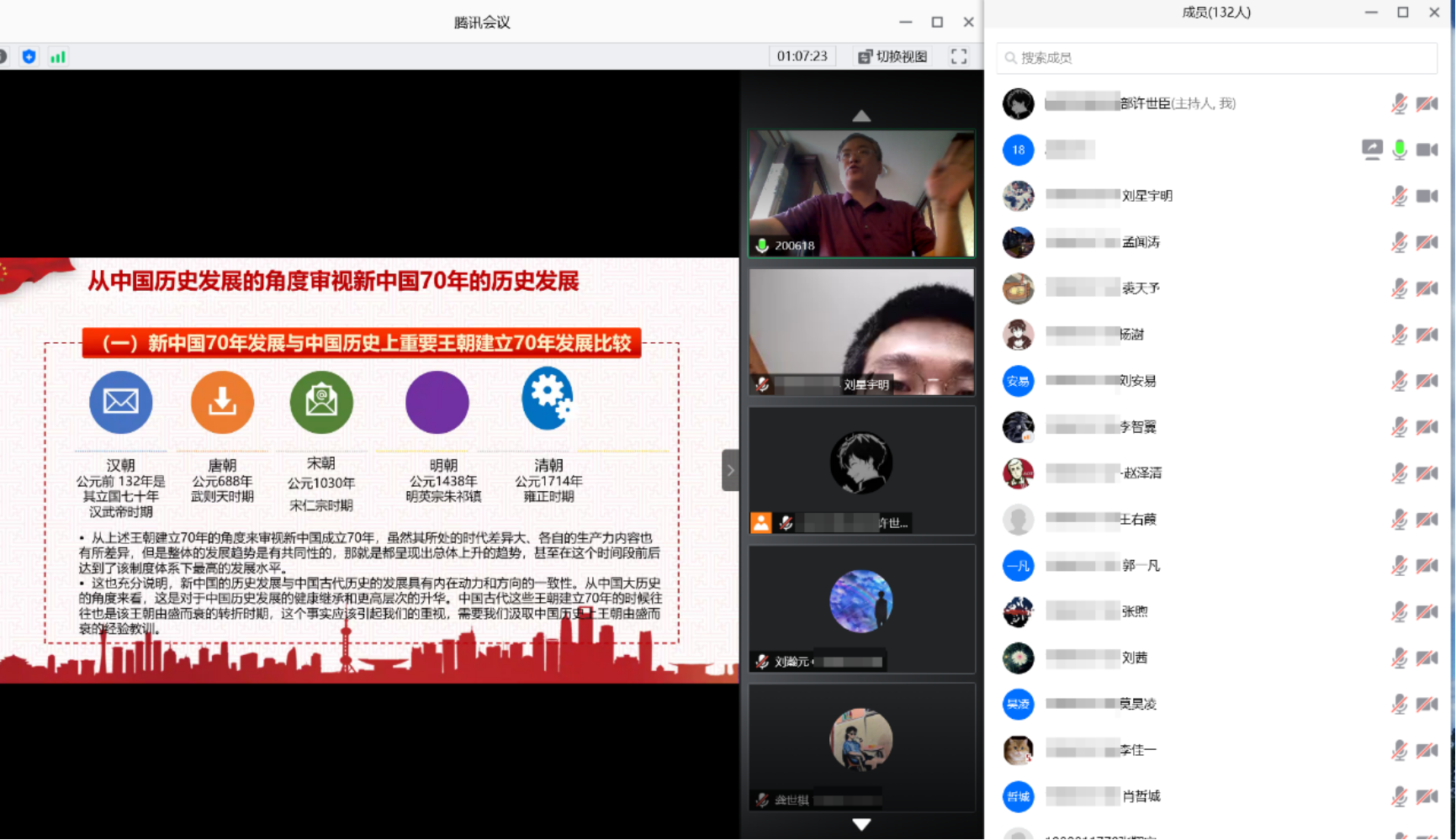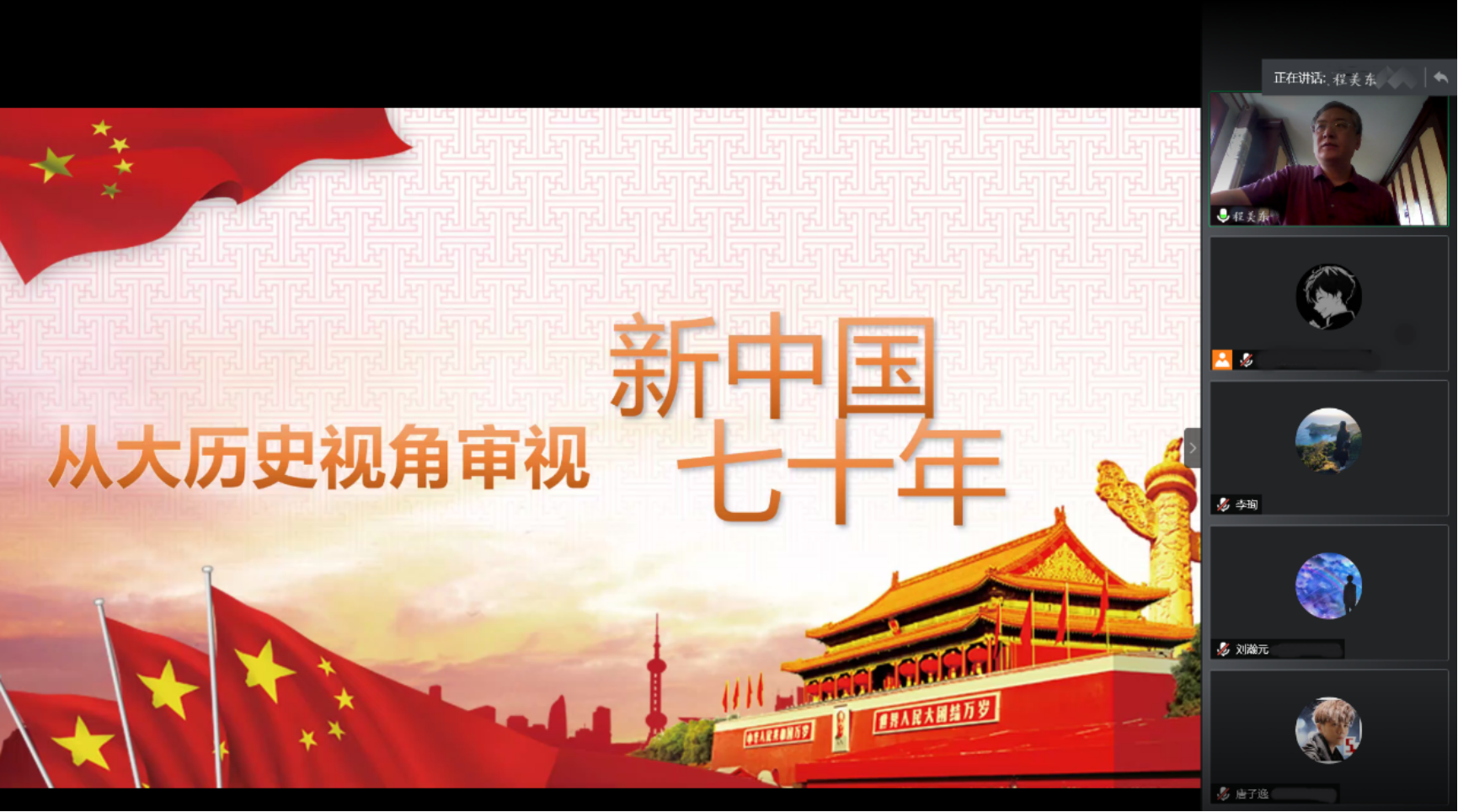 2020年6月18日下午,化学与分子工程学院采用线上讲座的方式开展了本学年思政实践理论课第一讲,邀请到马克思主义学院程美东教授给大家讲授《大历史视野下的新中国七十年》,学院辅导员李珣、侯梦旭、高琰等130余名师生共同参加了本次讲座。讲座由学院团委书记张舒主持。