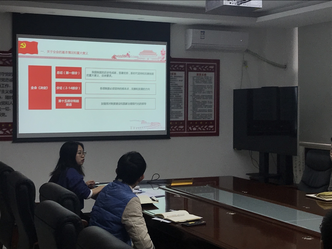 图1:支部书记金灿带头学习十九届四中全会精神