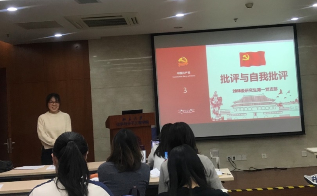 2019年11月22日,北京大学化学与分子工程学院18级研究生第一党支部“不忘初心、牢记使命”主题教育专题组织生活会暨十九届四中全会精神学习会在化学学院A717会议室顺利召开,全体支部成员参与了此次会议,会议由支部书记李昊主持。