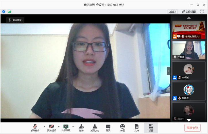 会议主要讨论鹿建华、孙萌泽、齐维琳、亓金婉和史策五位积极分子发展为预备党员的事项。首先各发展对象自我介绍并宣读入党志愿书,鹿建华同学表达了想成为共产主义事业接班人的迫切心情,新冠肺炎时期在我党的领导下一周内就建成了火神山医院,令人感动震撼;孙萌泽同学表示会不断提升自己,努力提高自己的修养,克服自身的不足体现当代青年的风貌;齐维琳同学通过《苦难辉煌》学习党史,对“星星之火可以燎原”有了更深的领悟,通过党课的学习开阔了她的思维;亓金婉同学分享了通过党课学习,观看爱国电影等活动,思想上对共产党人的纲领有了深刻的认识,在今后会用心思考人生理想,希望加入建设社会主义的大军中;史策同学的父亲是一名党员,从小的耳濡目染对党有着崇高的敬意,习近平总书记的话语给了他力量,将来定会不忘初心,努力前行。根据发展党员流程,几位同学的入党介绍人对申请人进行了全面的评价,客观表达了自己的意见。组织委员刘德佳同志报告发展对象的审核情况。最后经支部大会讨论及与会党员线上投票,一致同意接收鹿建华、孙萌泽、齐维琳、亓金婉和史策五位同学为中共预备党员。
