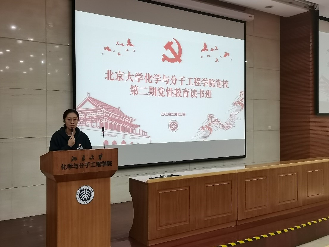 2020年10月23日下午16:30-18:00,北京大学化学与分子工程学院党校第二期党性教育读书班、党的知识培训班开班仪式于化学学院A204依次召开。化学学院学工办主任、团委书记张舒,学工办辅导员马晶晶及参与课程的所有初党、高党学员出席活动。