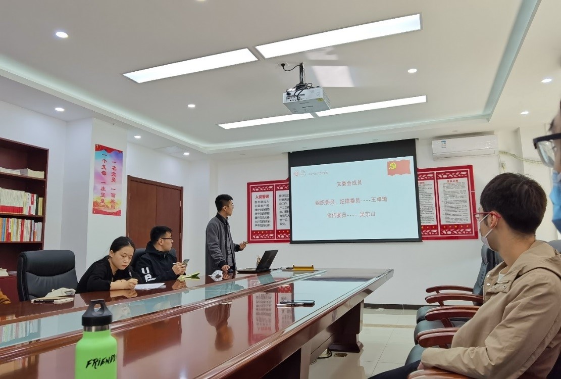 党支部书记詹佶睿首先向大家介绍了发展党员的详细流程及相关注意事项,带领支部内成员一起重新学习了支部工作守则,强调各位党员同志应始终严格要求自己,在学习和生活中积极发挥党员先锋模范作用。
