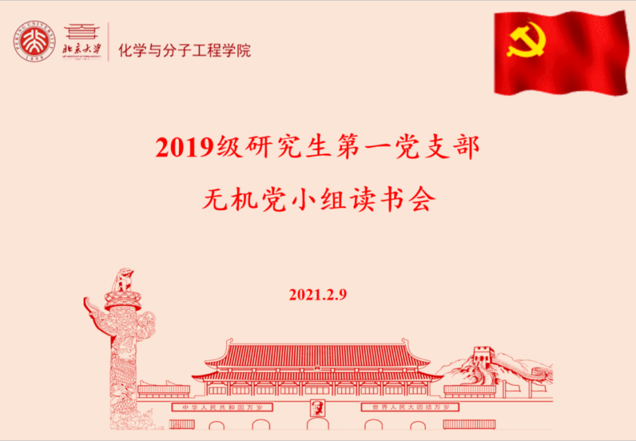 2月9日下午,化学学院2019级研究生第一党支部无机党小组顺利举办线上读书分享会。活动由党小组组长瞿杨同学主持,10位党小组成员就近期关注的国内外时事热点,结合个人经历依次分享了学习体会。