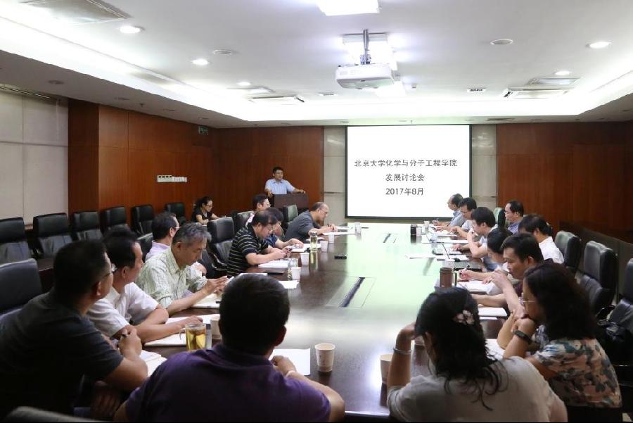 2017年8月23日,化学与分子工程学院发展讨论会在化学楼A205会议室召开。会议由院党委书记马玉国和院长高毅勤共同主持,学院党政办公会成员、各系所中心负责人及党政办公室、科研办公室负责人共20余人参加了会议,共谋学院发展之计。