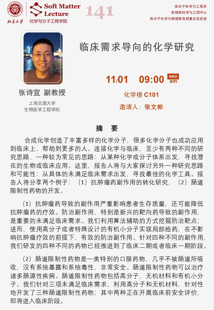 【Soft Matter Lecture 141】临床需求导向的化学研究