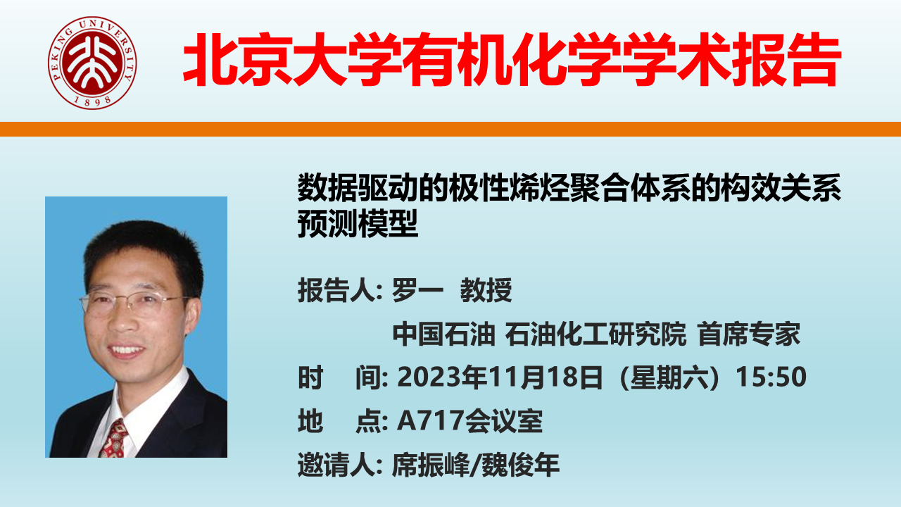 【北京大学有机化学学术报告】数据驱动的极性烯烃聚合体系的构效关系预测模型