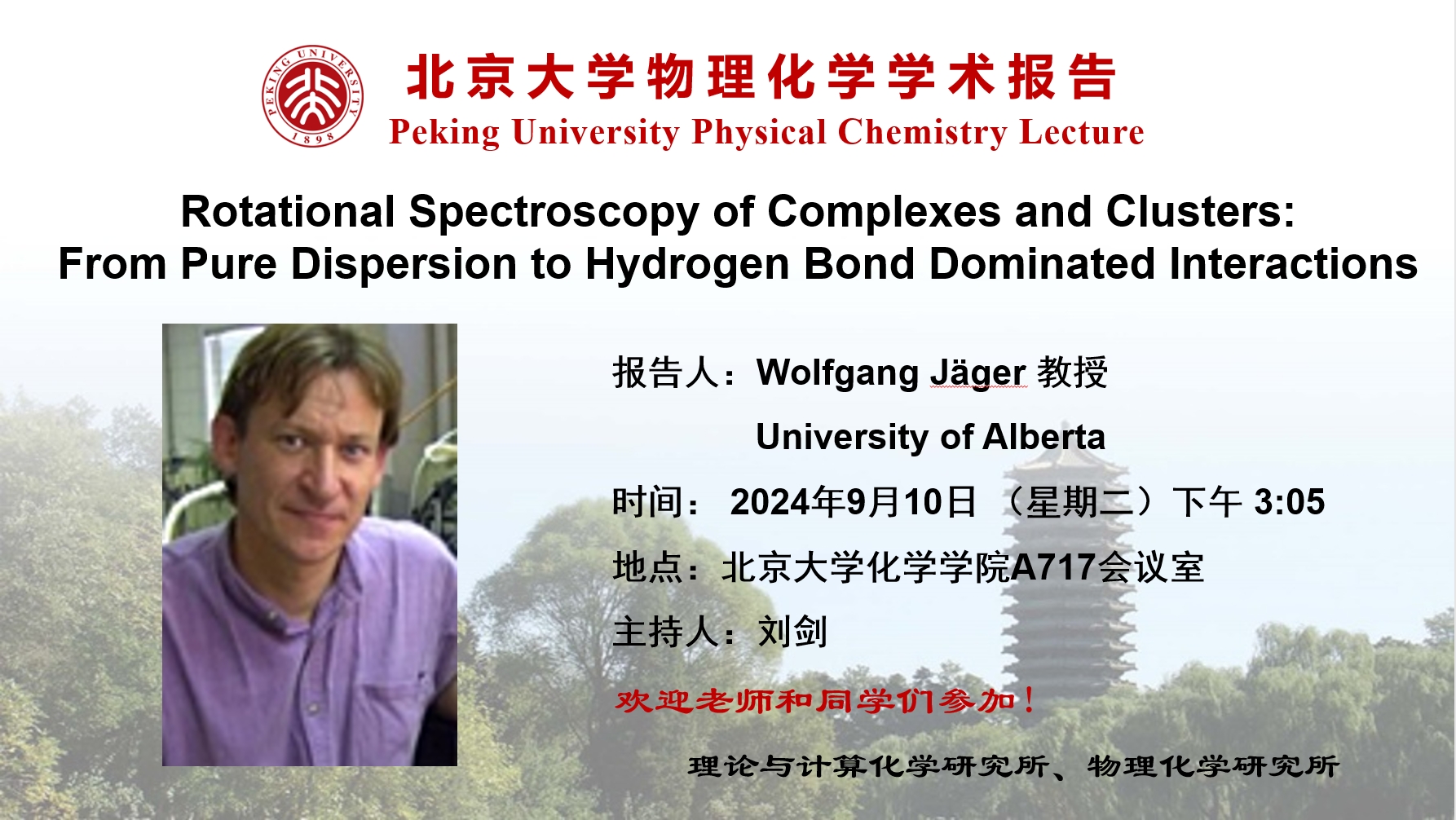 【北京大学物理化学学术报告】Rotational Spectroscopy of Complexes and Clusters: From Pure Dispersion to Hydrogen Bond Dominated Interactions