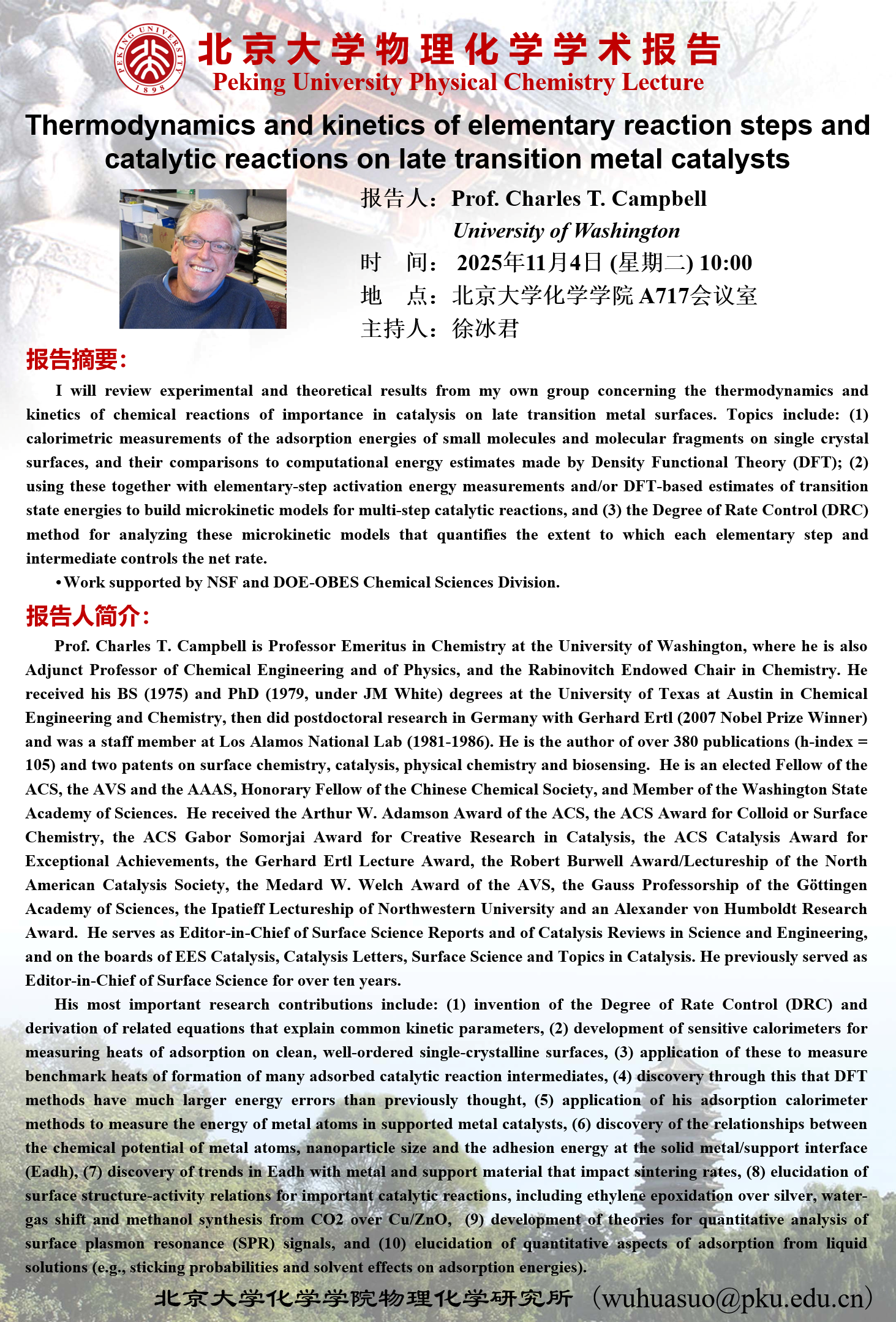 【北京大学物理化学学术报告】Thermodynamics and kinetics of elementary reaction steps and catalytic reactions on late transition metal catalysts