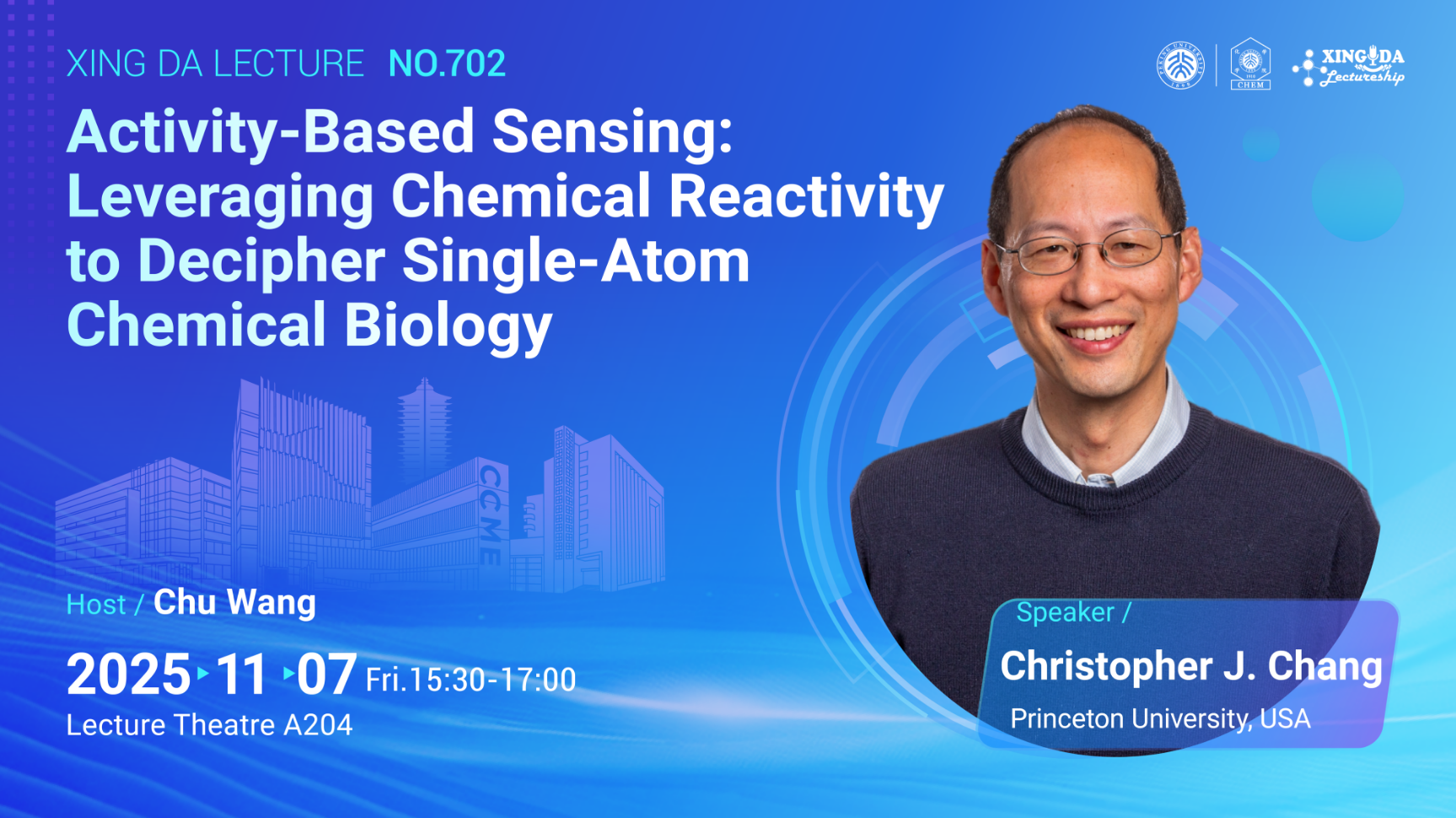 Christopher J. Chang 教授现任美国普林斯顿大学(Princeton University)化学系 Edward and Virginia Taylor 生物有机化学讲席教授。他于 1997 年在加州理工学院(Caltech)获得学士与硕士学位,2002 年在麻省理工学院(MIT)获得博士学位,师从 Daniel G. Nocera 教授,随后在麻省理工学院与 Stephen Lippard 教授从事博士后研究。在加入普林斯顿之前,Chang 教授在加州大学伯克利分校(UC Berkeley)任教二十年,曾任化学系1942级讲席教授,并在分子与细胞生物学系及 Helen Wills 神经科学研究所兼任职务。他的研究横跨无机化学、有机化学与化学生物学,核心目标是理解金属元素及氧化还原活性分子在生命体系中的化学与生物学功能。Chris Chang 教授提出了Activity-Based Sensing (ABS)的概念,发展出一系列可用于活体成像的荧光探针,用于检测过渡金属离子及小分子信号物,广泛应用于神经退行性疾病、肿瘤代谢及氧化应激研究。他曾荣获 2024 年美国化学会 Alfred Bader 生物有机与生物无机化学奖、2021 年古根海姆学者奖、2020 年洪堡奖及 2019 年 Sackler 化学奖等多项国际荣誉。他目前担任ACS Accounts of Chemical Research 主编。
