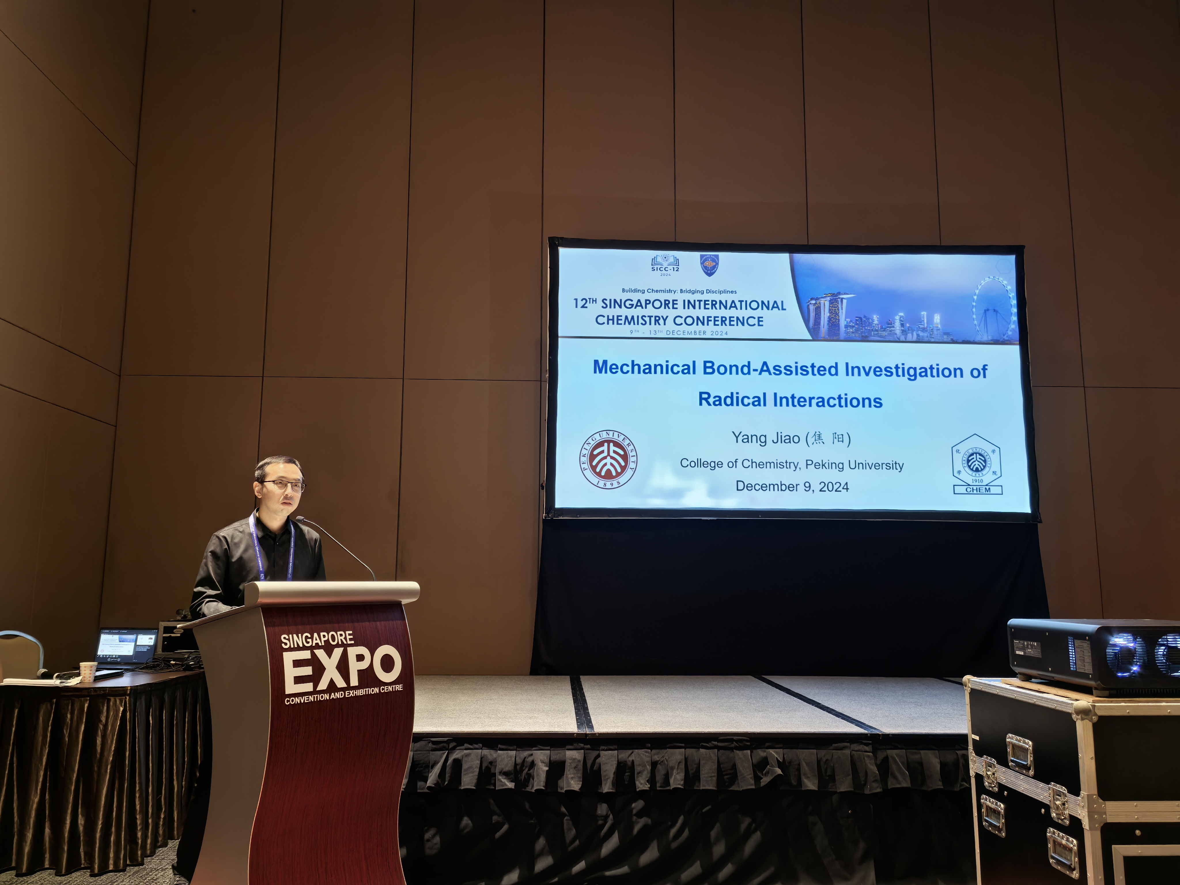 2024年12月9-13日,焦阳老师参加了在新加坡国家化学研究所举办的第12届新加坡国际化学会议,并受邀在高分子与超分子化学的前沿专题讨论会做了题为“Mechanical Bond-Assisted Investigation of Radical Interactions”的报告。