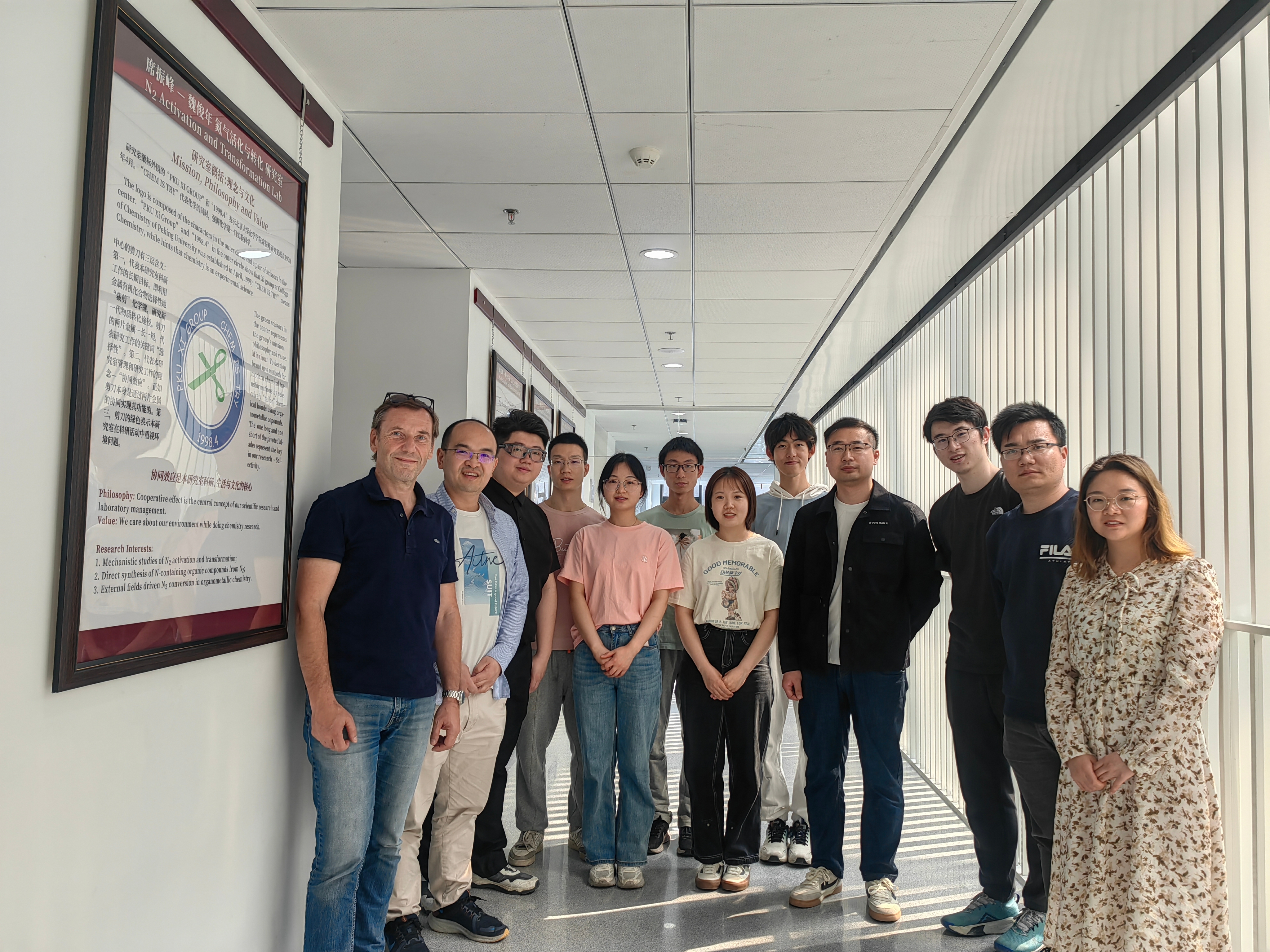 热烈欢迎Nicolas Mézailles教授来组访问 时间:2024-05-08 来源:作者: 字体: 【小】 【中】 【大】 4月12日,应席老师的邀请,图卢兹第三大学Nicolas Mézailles教授在上海召开的第一届空气主份转化化学国际研讨会上介绍了他在氮气活化领域所做的工作。4月18日下午,Mézailles教授来组访问,同学们与Mézailles教授报告了近期的工作进展,Mézailles与老师、同学们展开了热烈的交流讨论。接着参观了实验室,并在课题组概览展板前与老师、同学们合照。
