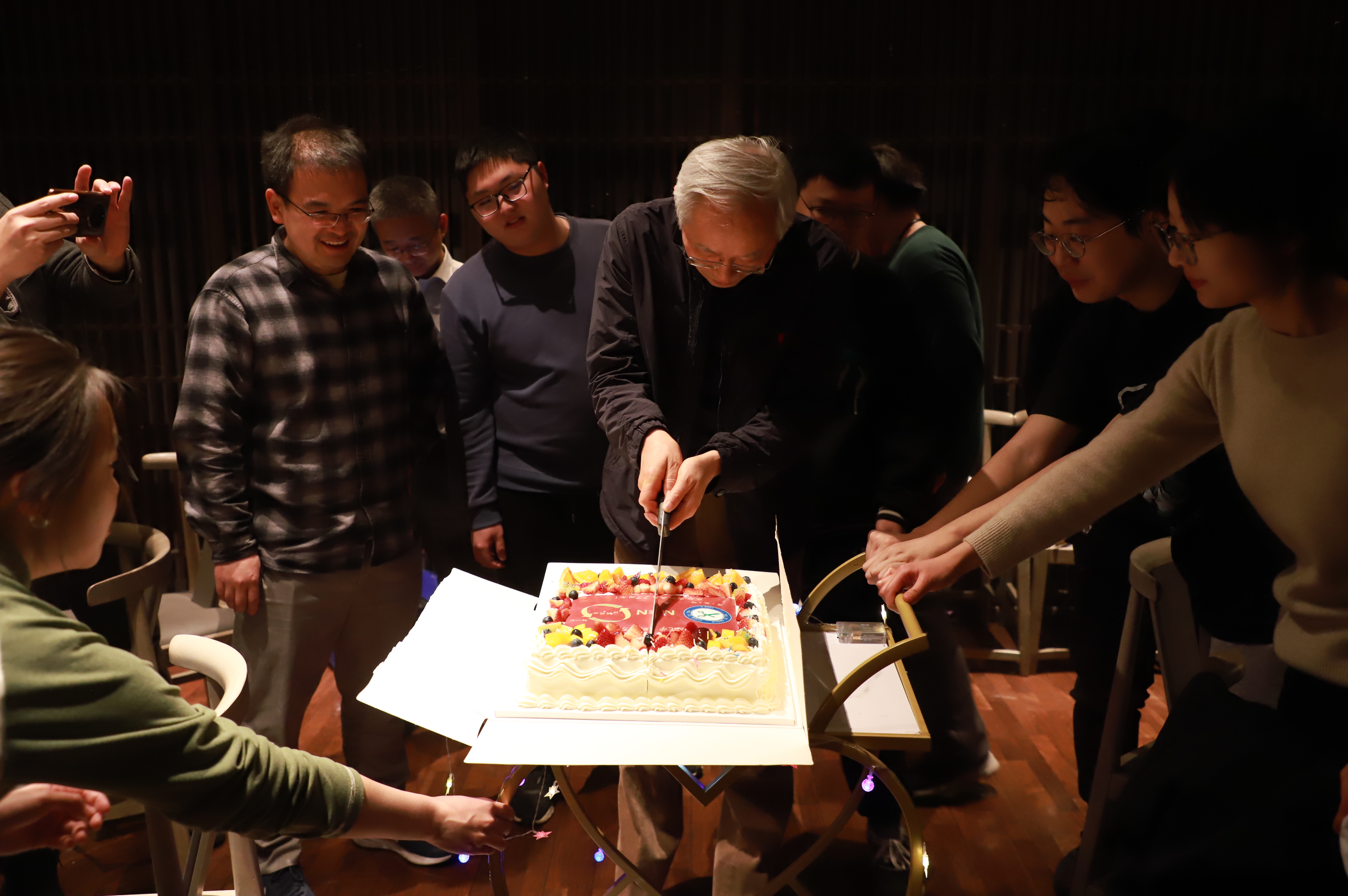 2025年3月28日,研究室在组师生和几位已离组人员欢聚一堂,在醉爱饭店庆祝席组成立27周年。首先,席老师在为组庆定制的蛋糕上切下了第一刀,从正中间切断了氮气的叁键,组庆聚会在热烈的氛围下开始了。接下来,已离组的王从洋、郝伟、丰睿、李石、张韶光师兄分别回忆了在组内学习的感受,分享了在不同岗位上的工作经历,表达了对席组未来的期待!郁磊代表在组同学讲述了在组内学习生活的感受,表达了对一代代席组成员接续奋斗的感谢。最后,在组同学纷纷向已离组的师兄们请教人生发展的困惑,讨论课题上正在经历的困难。