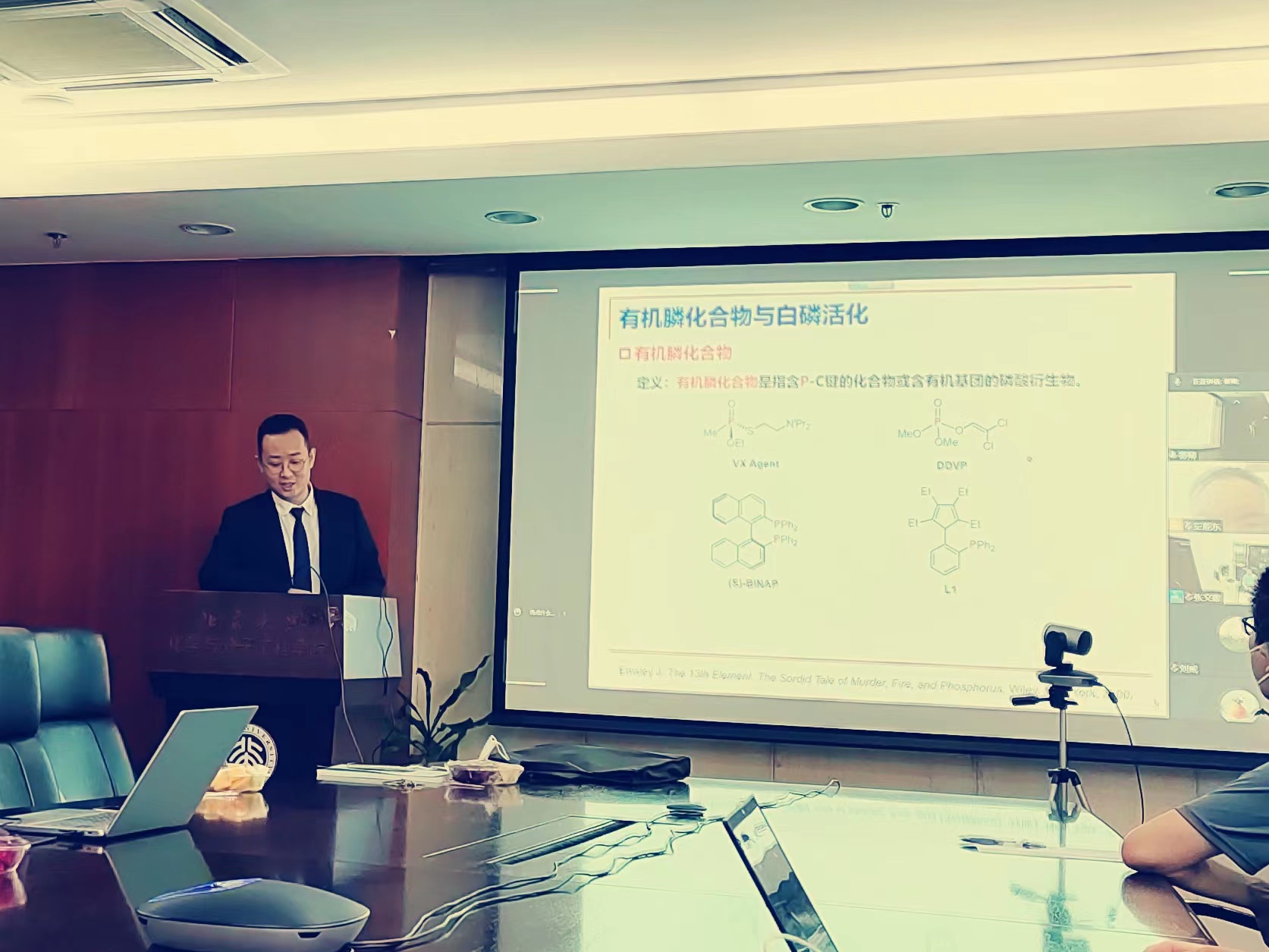 研究室举行博士论文答辩 时间:2022-05-27 来源:作者: 字体: 【小】 【中】 【大】 2022年5月25日,研究室举行博士论文答辩。由于疫情影响,本次答辩通过腾讯会议以线上视频方式进行,席振峰教授和张文雄教授共同指导的17级研究生胡静远在化学学院A205教室现场参加。胡静远同学准备细致充分,科研努力,工作充实。经答辩委员会专家评审一致通过,建议授予博士学位。 感谢胡静远同学多年来为课题组做出的杰出贡献,以及留下的精彩瞬间。离开了熟悉的实验室,走上了新的工作、科研、生活道路,研究室祝福他前程似锦,在新的岗位上工作顺利!